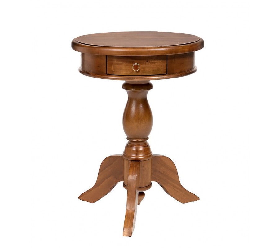 Luxusní koloniální kulatý příruční stolek Mahani se šuplíkem a vyřezávanou nohou z mahagonového dřeva v hnědé barvě 65 cm