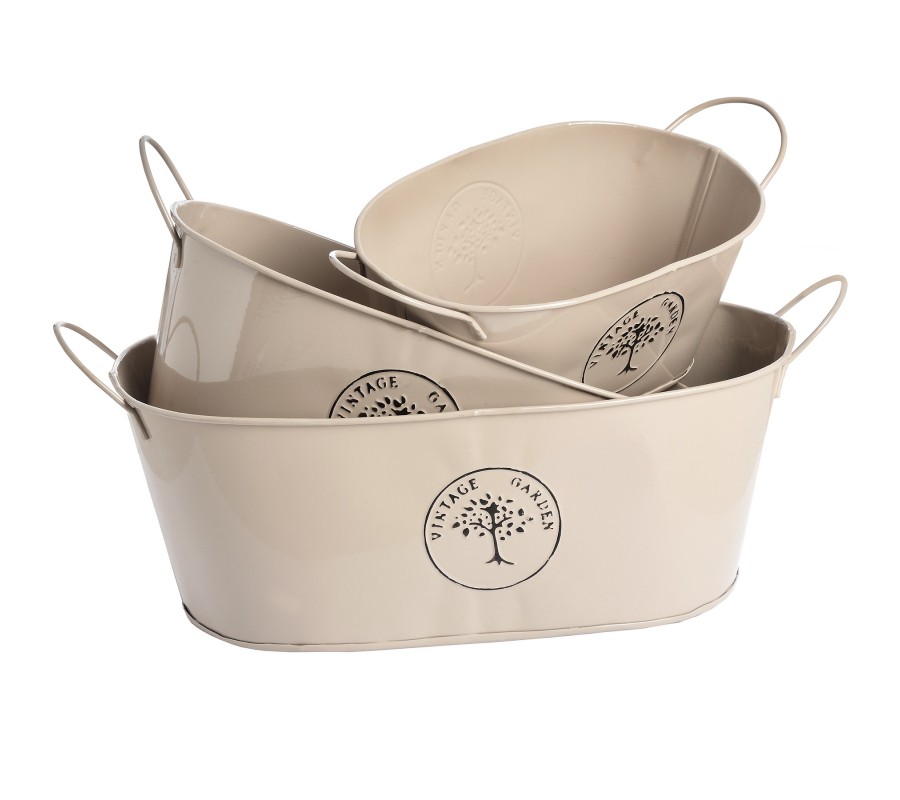 The Vintage Garden Set of Three Oval Tin Storage Baskets