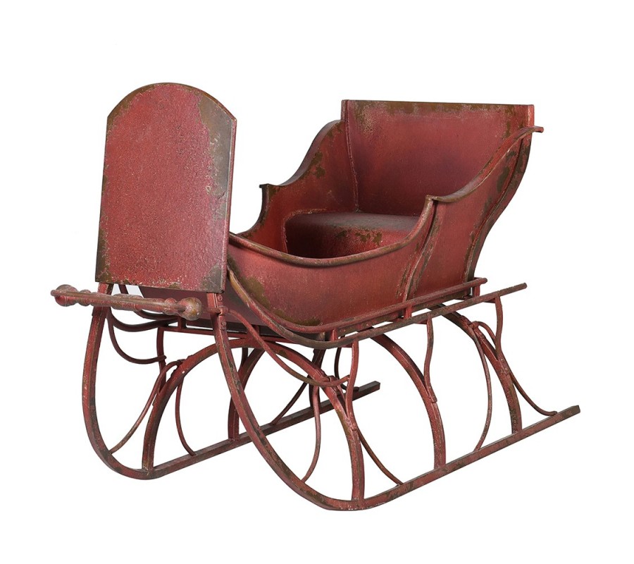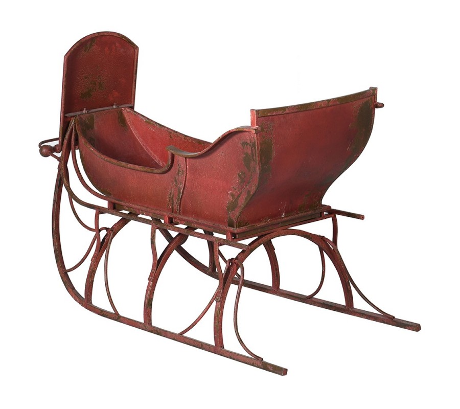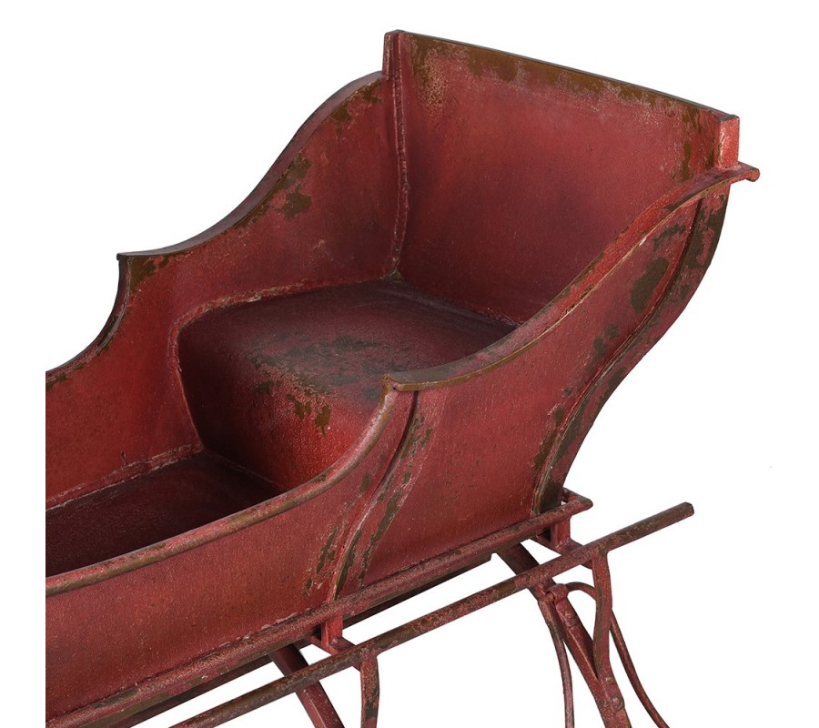 Luxusní vintage kovová dekorace saní Snowfall v červené barvě s rezavou patinou 133 cm