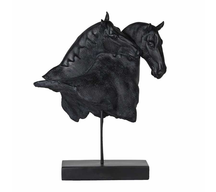 Stylová designová černá dekorativní socha Gatern v podobě dvou koňských hlav s kamenným designem 46 cm