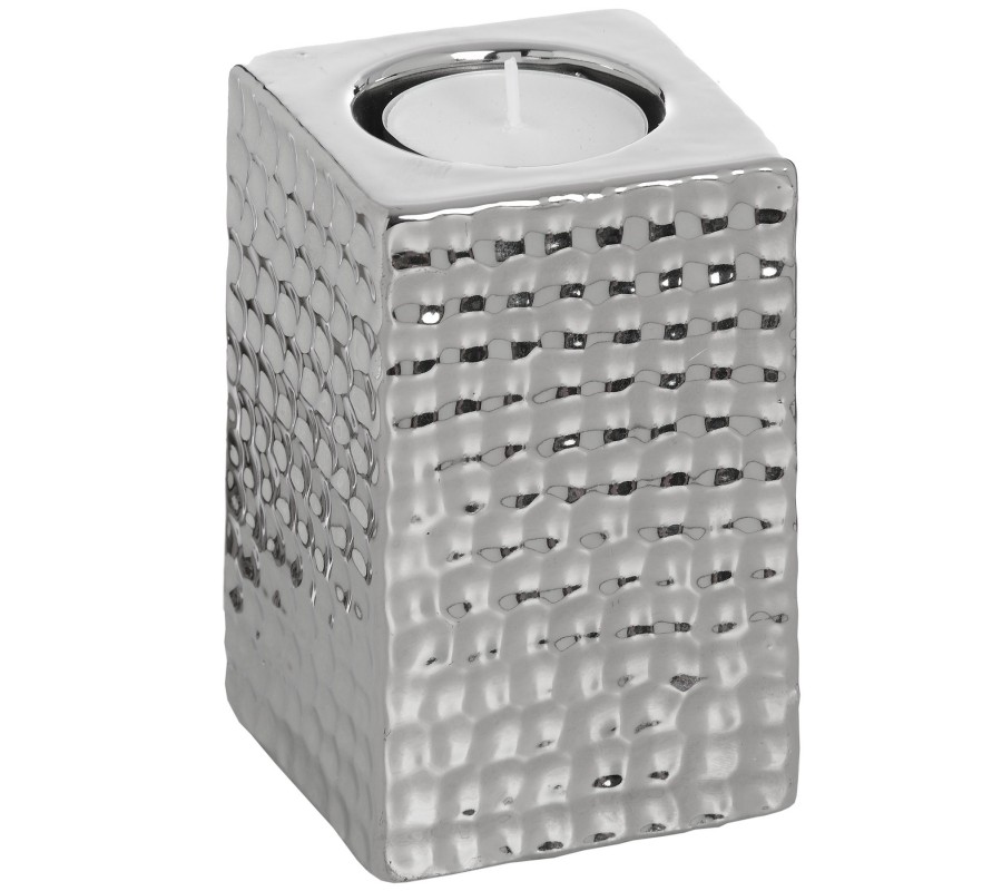 Square Silver ceramic Tea Light Holder - Small