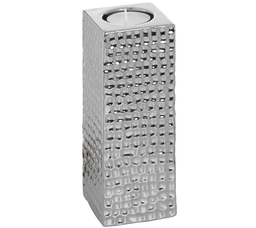 Square Silver Ceramic Tea Light Holder - Large