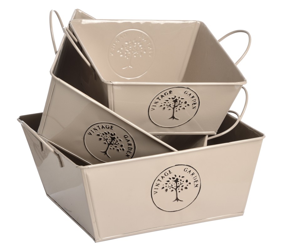 The Vintage Garden Set of Three Square Tin Storage Baskets