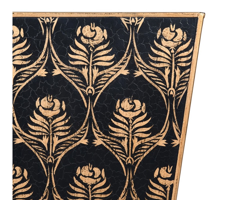 Povrchová úprava má jemně popraskaný charakter, takzvaný crackle efekt, který dodává předmětu dojem starobylosti a ručního zpracování. Právě tento detail umocňuje jeho vintage a retro styl, přičemž černý podklad v kombinaci se zlatou barvou vytváří působivý kontrast a nadčasový vzhled.