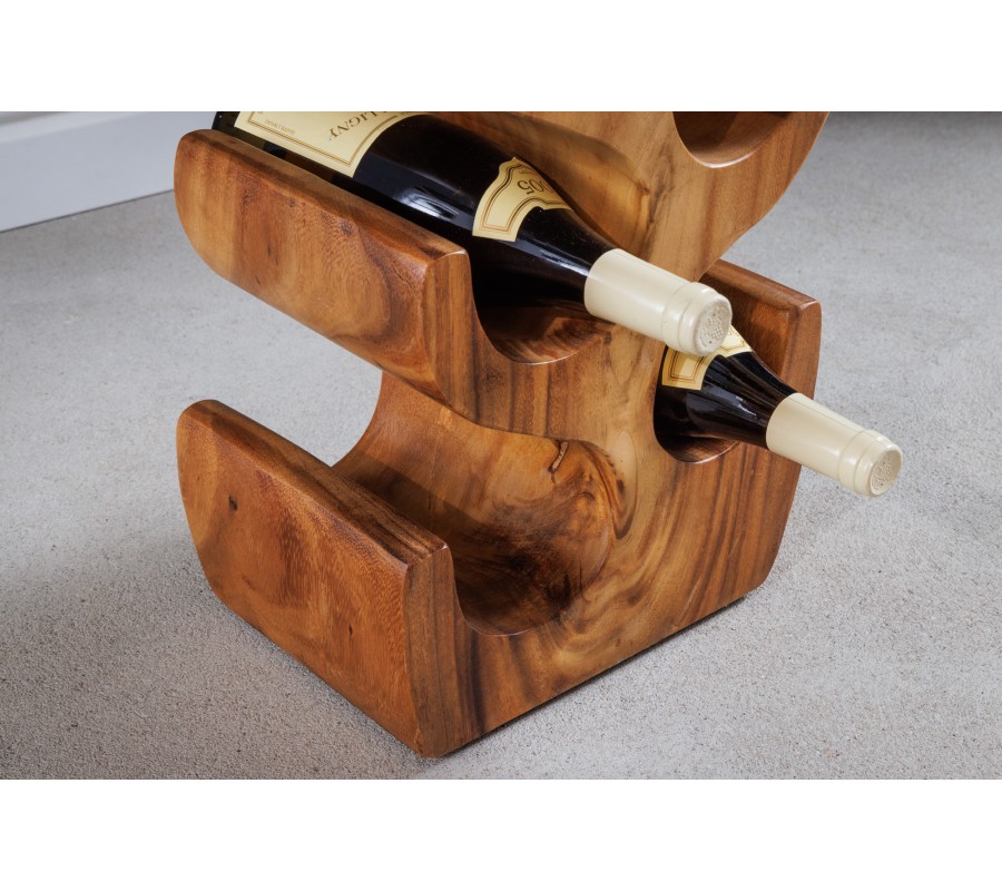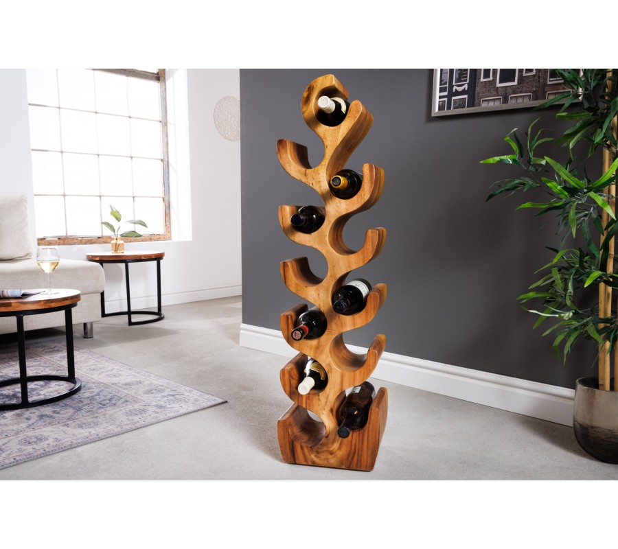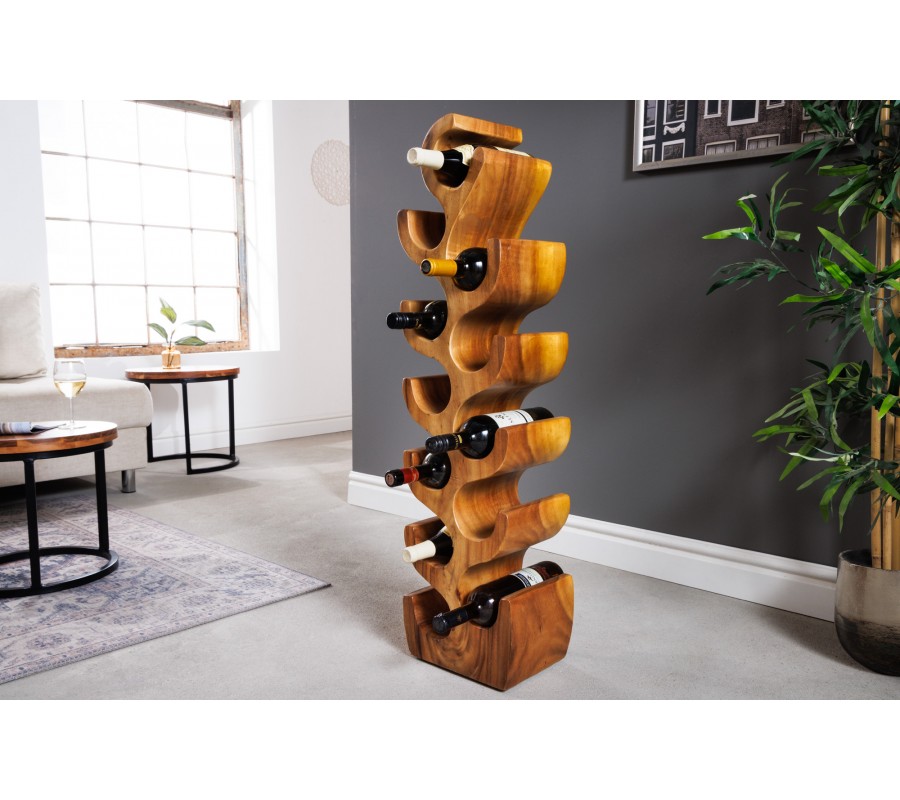 Designový stojan na víno Milena z exotického lakovaného dřeva Suar 101 cm