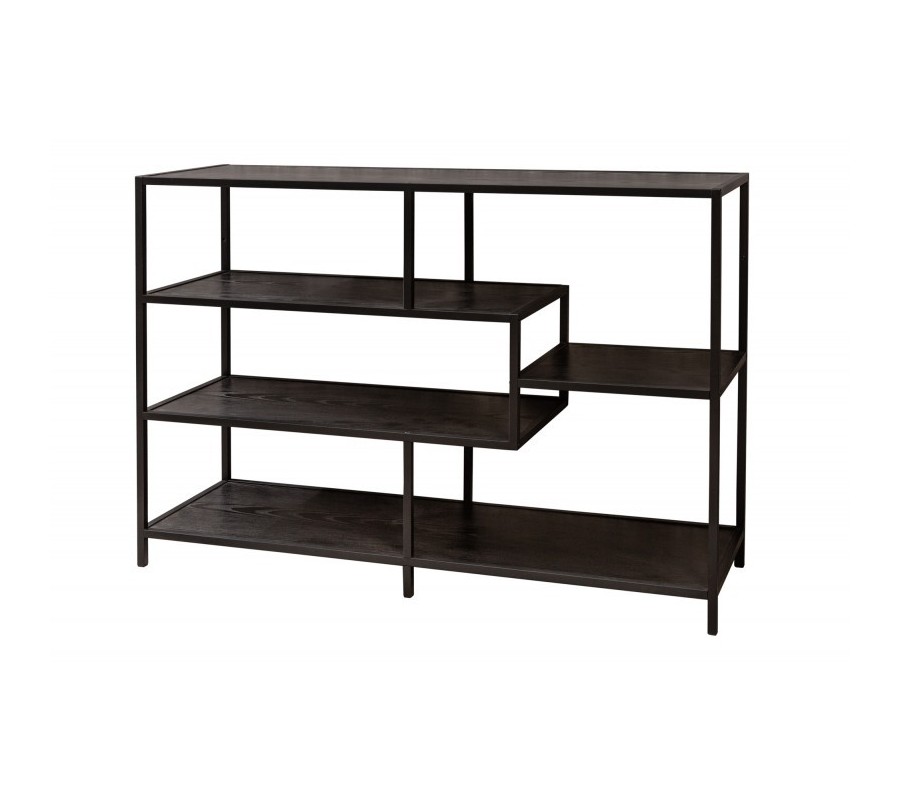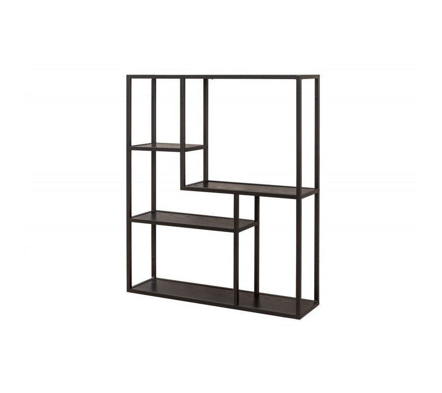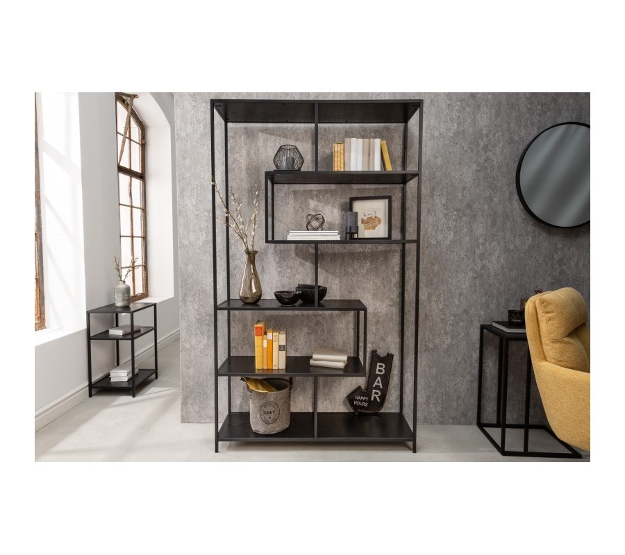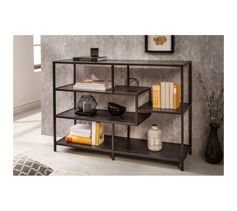 Designová industriální obývací sestava Industria Negra s asymetrickými policemi v černé barvě