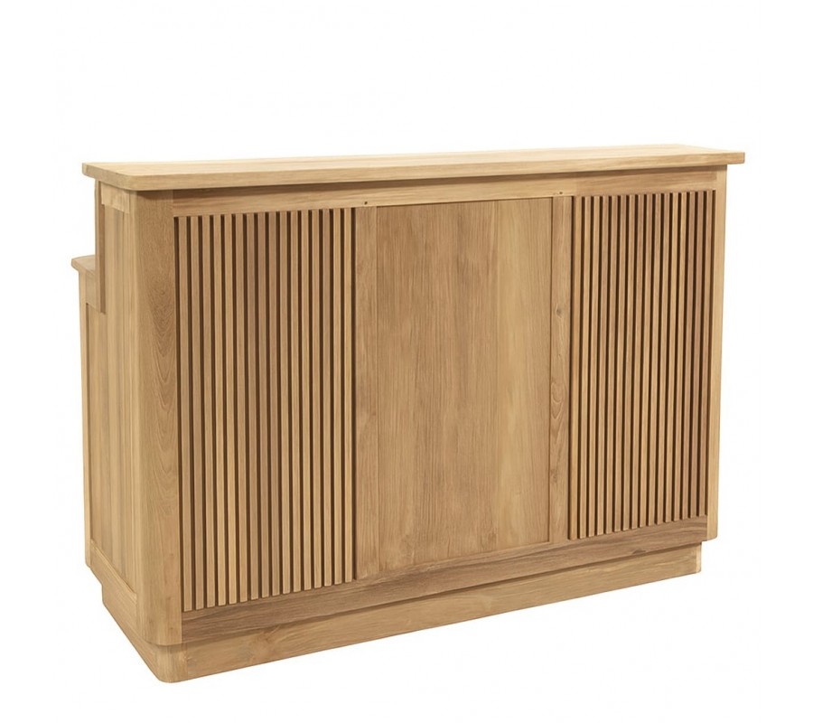 Luxusní art deco barový pult Riga z masivního teakového dřeva ve světle hnědé barvě s vertikálním lamelovým zdobením 156 cm