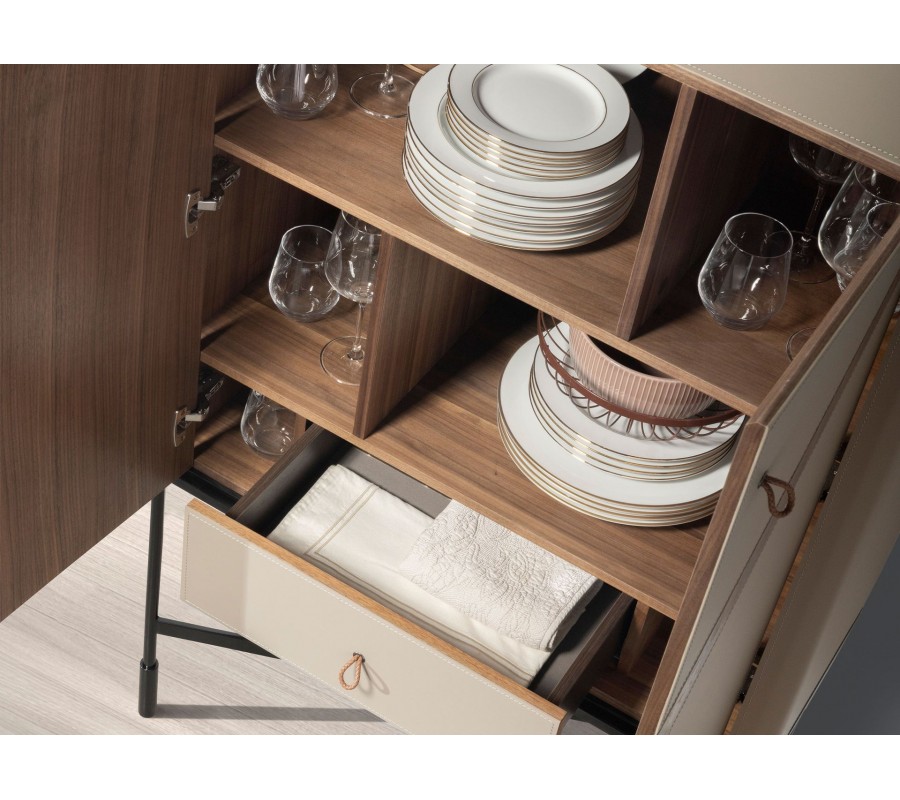 Barová skříňka Forma Moderna je dokonalým spojením funkčnosti a estetiky v režii moderního italského designu. Paleta zemitých odstínů působí sofistikovaným dojmem a ve spojení s prémiovými materiály přinese do vašeho obývacího pokoje či jídelny eleganci tichého luxusu.