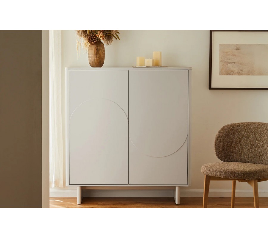 Barová skříňka Savonia vás okouzlí svým nadčasovým vizuálem a elegantním bílým provedením. Minimalistický moderní design se pojí s elegancí art deco stylu a tento nábytek je tak nejen praktickým ale i estetickým doplňkem jídelny.