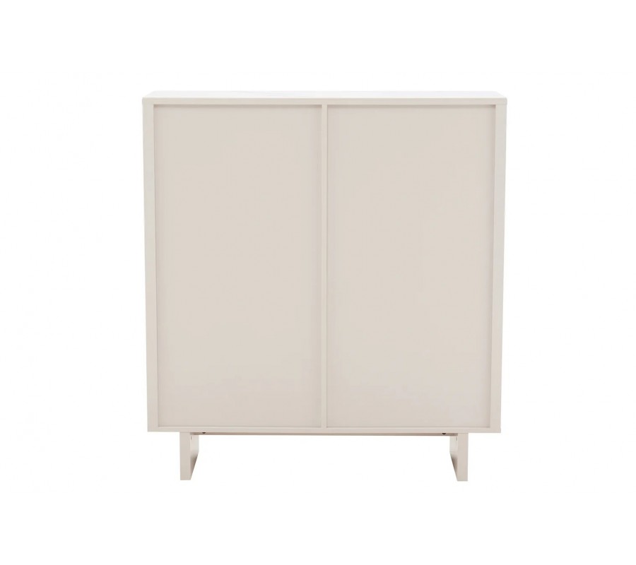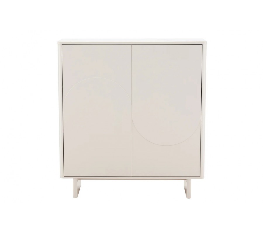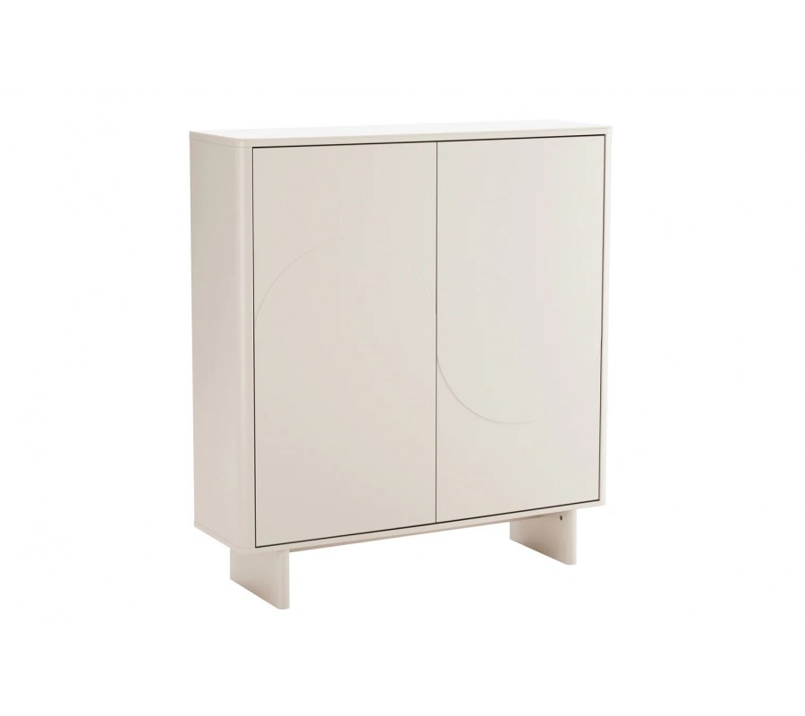 Silueta je moderní a lineární, zjemněná zaoblenými rohy a hranami. Úložný prostor má obdélníkový půdorys a sestává ze šesti policových míst, organizovaných do dvou sloupců. Dvojitá dvířka nemají úchyty a otevírají se zatlačením. Jejich přední stranu zdobí reliéf ze dvou půloblouků tvořících vlnu. Tvar je výrazný, dynamický a inspirovaný art deco stylem, zatímco provedení ze snížených a zvýšených ploch působí čistě a minimalisticky. Podstava design odlehčuje a široký obdélníkový tvar nožiček s lineární spojnicí zároveň zaručuje výbornou stabilitu.
