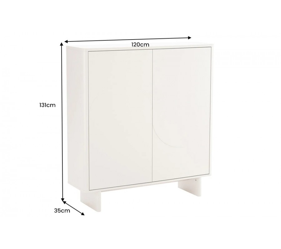 Moderní bílá barová skříňka Savonia s dvojitými dvířky s geometrickým designem vlny a mramorovou deskou 131 cm