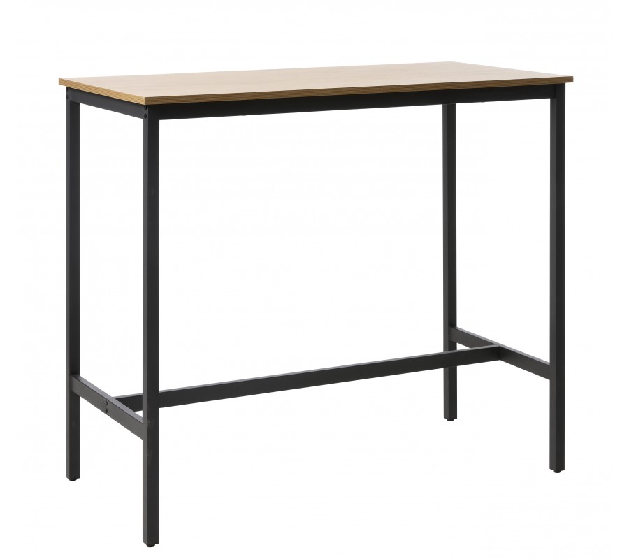 Moderní industriální obdélníkový barový stůl Holstebro se svělou dubově hnědou deskou a černou konstrukcí 120 cm