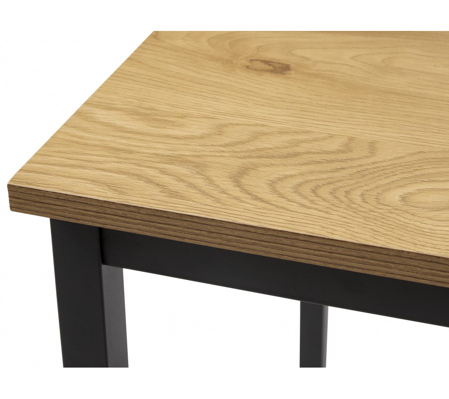 Barový stůl máobdélníkovou vrchní desku, vyrobenou z dýhy v přírodním světlém hnědém dubovém provedení. Povrch pokrývá melaminová vrstva, které jí zaručuje vysokou odolnost vůči oděru, teplu či vlhkosti. působí naturálně a vytváří teplý kontrast k podstavě.