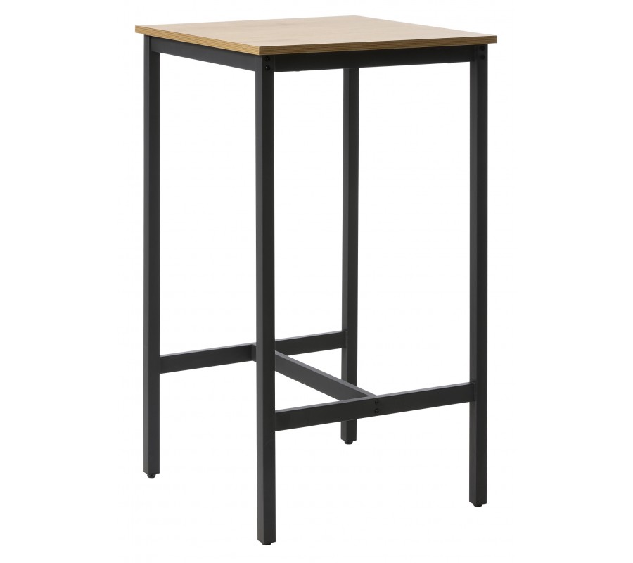 Designový industriální barový stůl Holstebro se čtvercovou dubově hnědou deskou a černou kovovou podstavou 60 cm