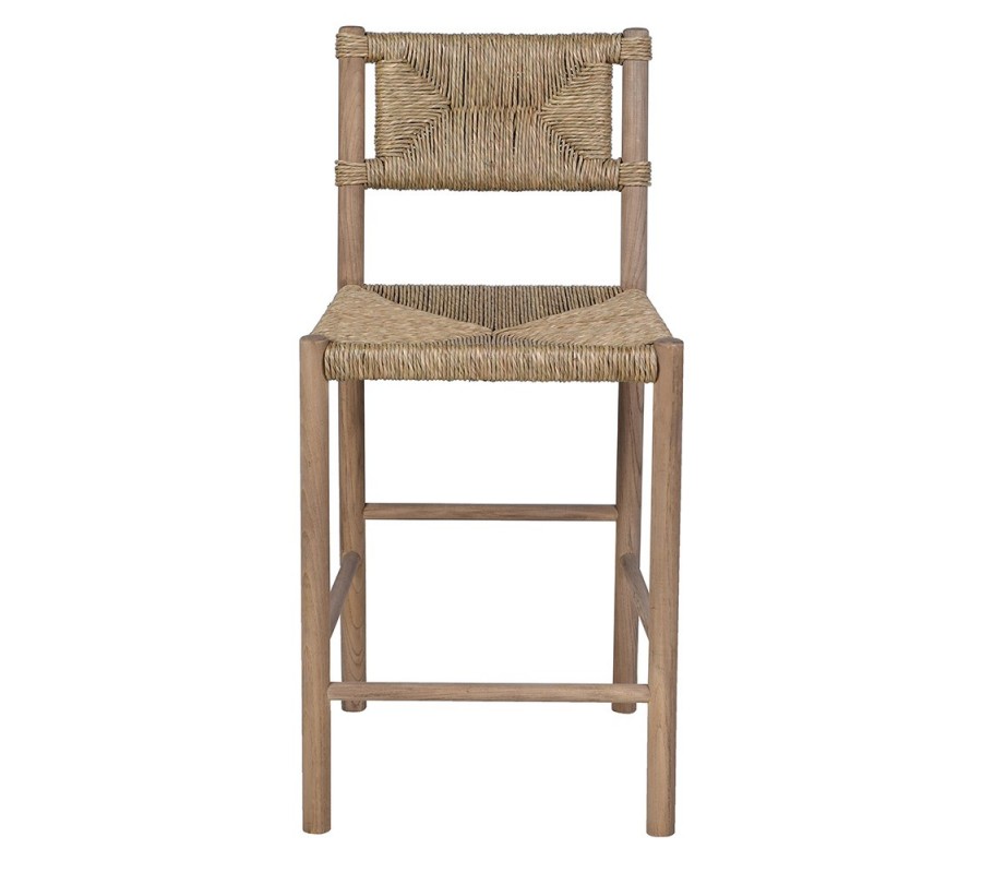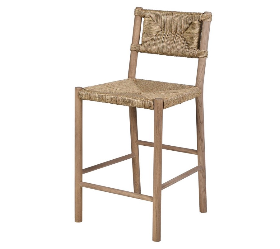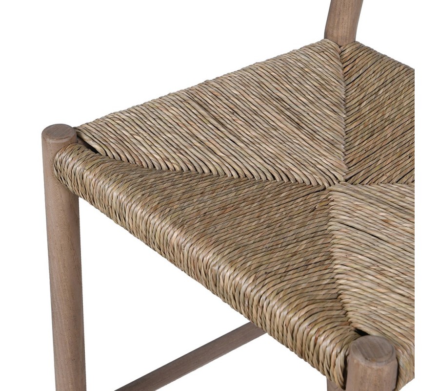 Stylová etno barová židle Nara vyniká svým autentickým přírodním vzhledem. Její konstrukce z jilmového dřeva má jemně hnědý matný povrch, který podtrhuje přirozenou kresbu dřeva a působí elegantně a přirozeně. Sedadlo a opěrka na záda jsou ručně vyplétané z mořské trávy v jemnéhnědé barvě, která přináší do interiéru pocit klidu, harmonie a spojení s přírodou.