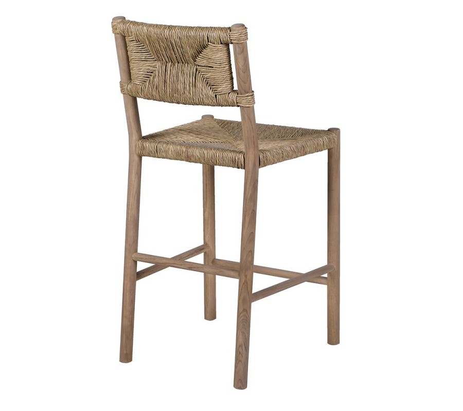 Designová etno barová židle Nara z jilmového dřeva s výpletem z mořské trávy v hnědé barvě 96 cm
