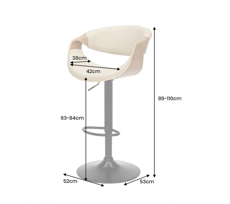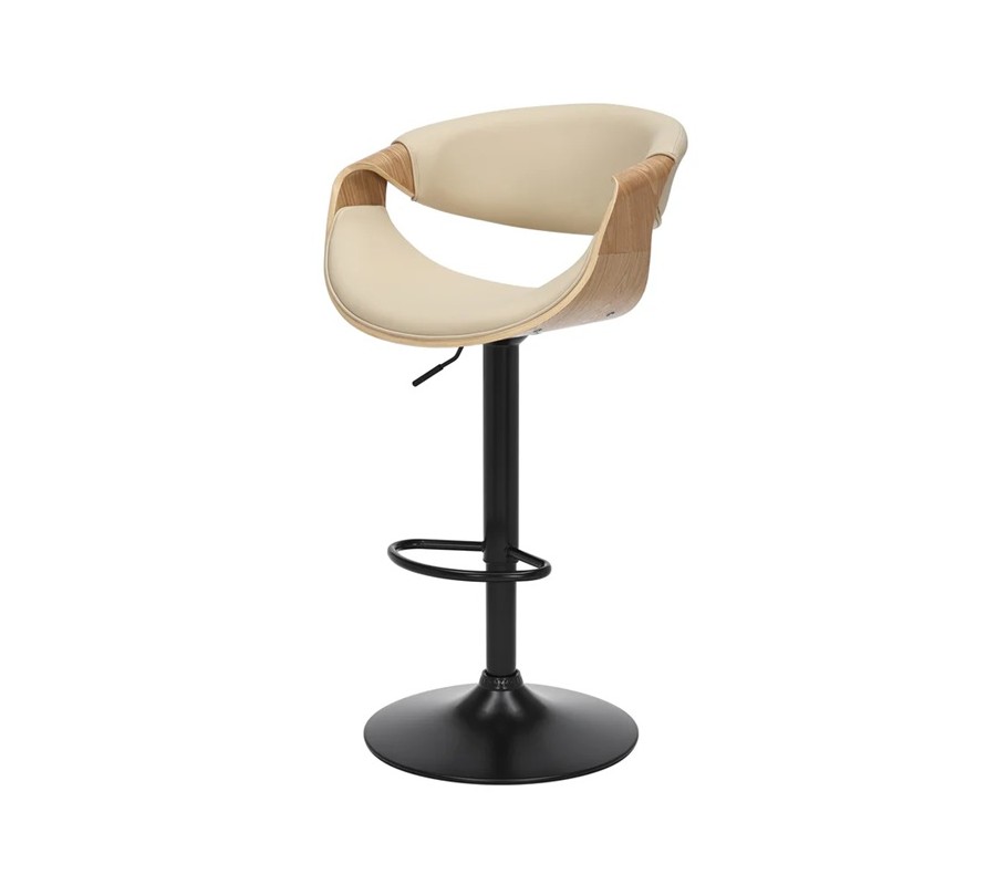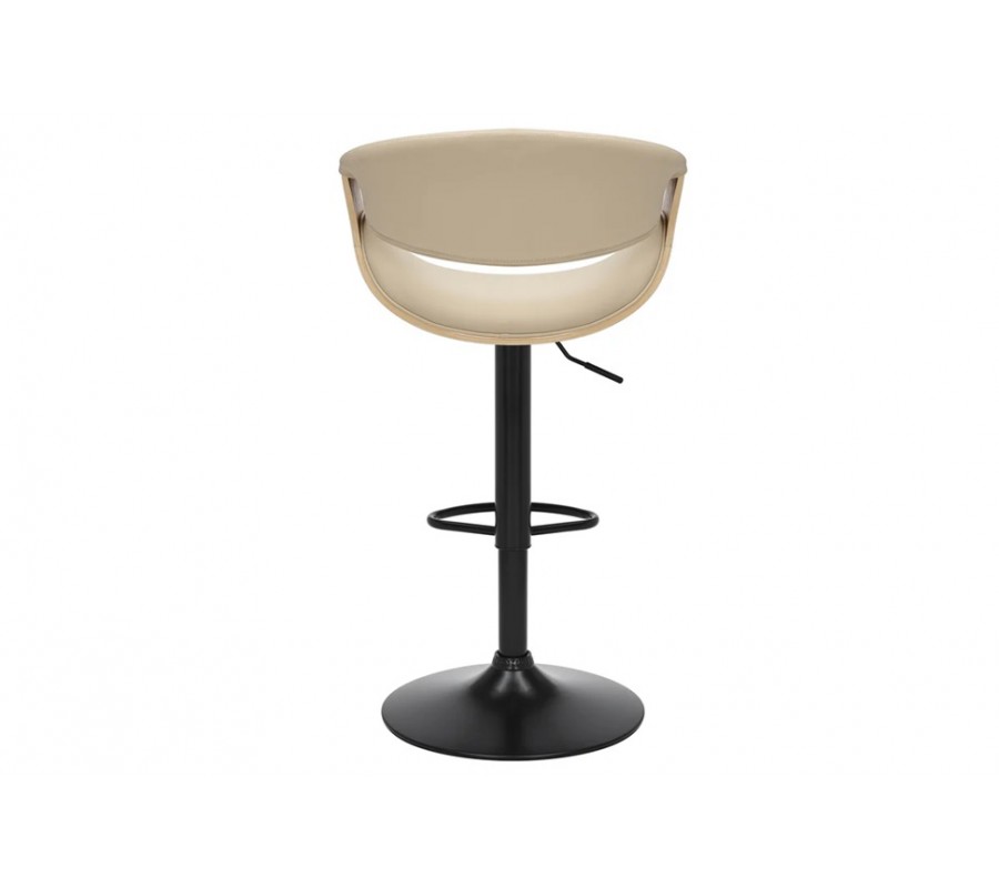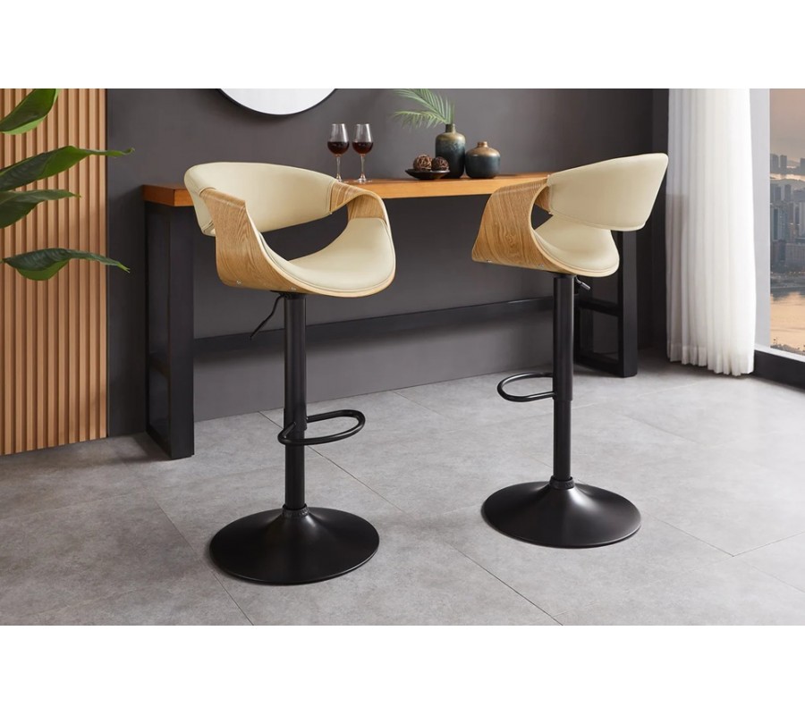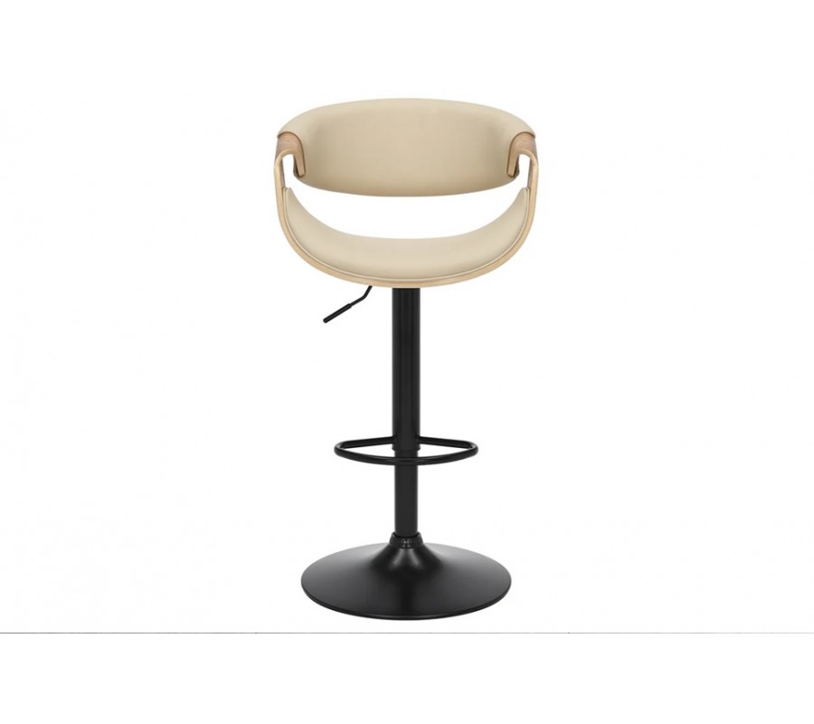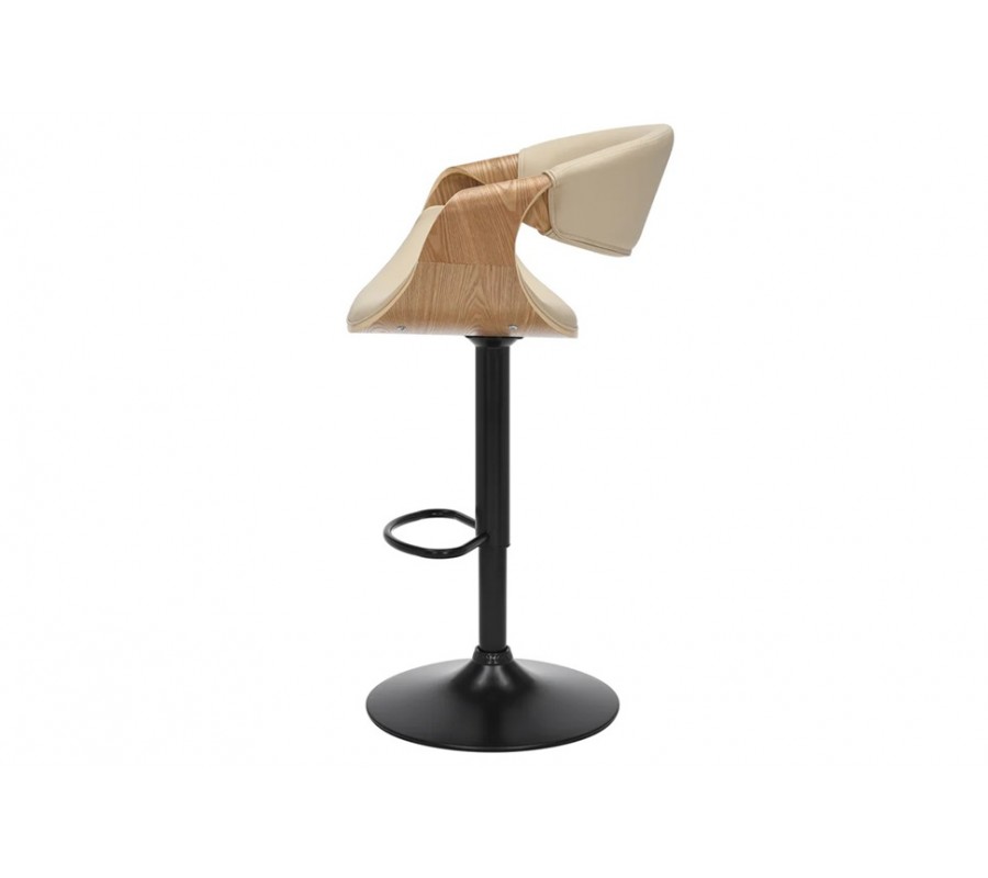 Designová otočná barová židle Norwich s výškově nastavitelnou nohou s krémovým koženým potahem a hnědou dubovou dýhou 110 cm