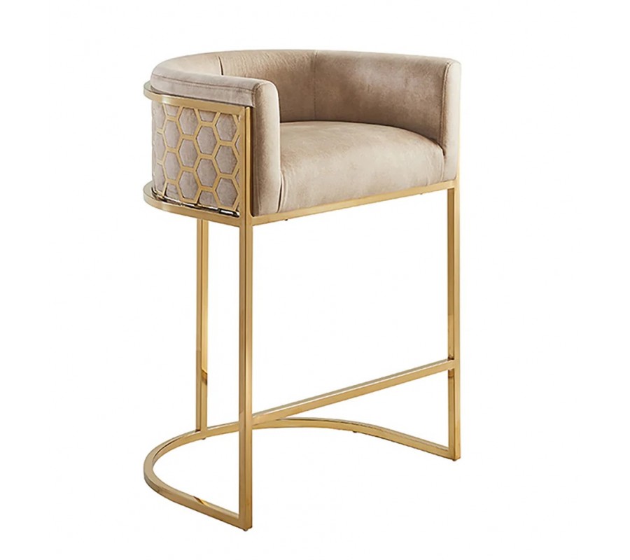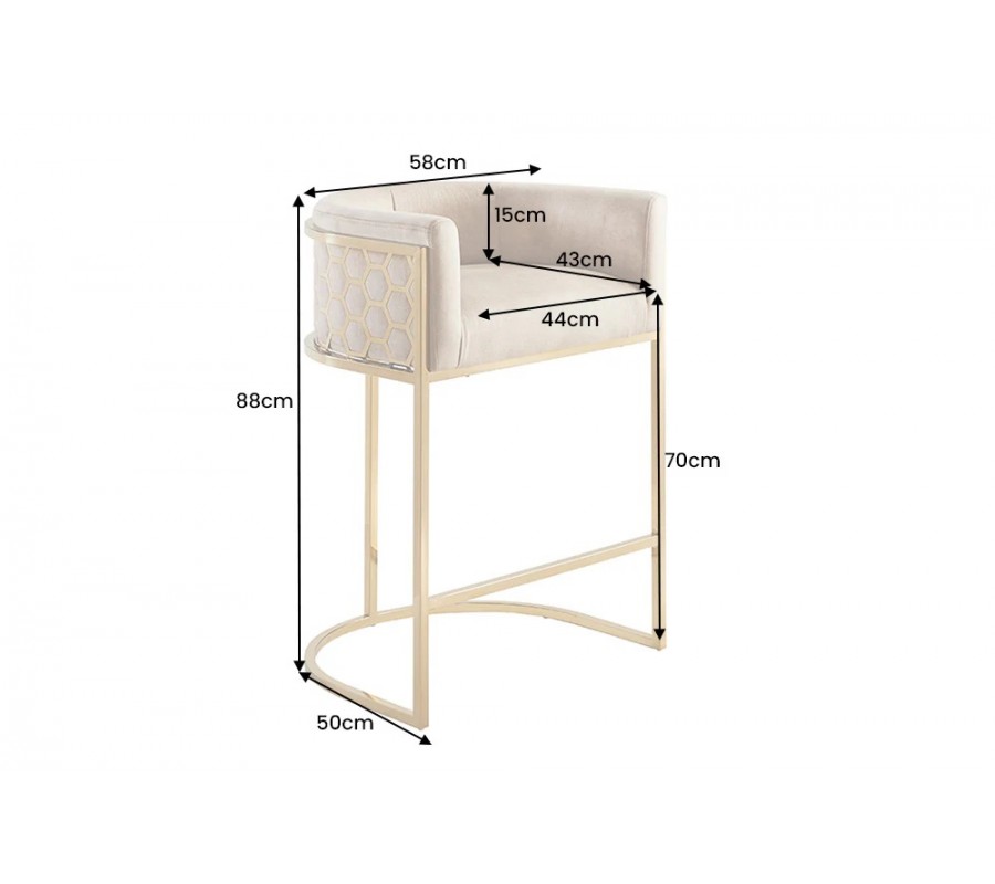 Art deco barová židle Aurelia Gold se sametovým béžovým potahem a zlatou kovovou konstrukcí 88 cm