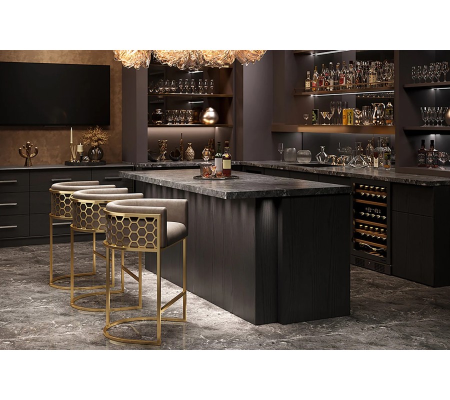 stolička Aurelia Gold je ideální do prostor, které preferují elegantní a reprezentativní prvky – hodí se k moderním barovým pultům, kuchyňským ostrůvkům, ale i do kaváren, salonů či pracovny s decentním designem. Výborně ladí s mramorovými povrchy, světlým dřevem, skleněnými prvky se zlatým rámováním nebo se sametovými doplňky v odstínech béžové, karamelové či bílé. V interiéru vytváří pocit jemnosti, jednoty materiálů a promyšlené estetiky.