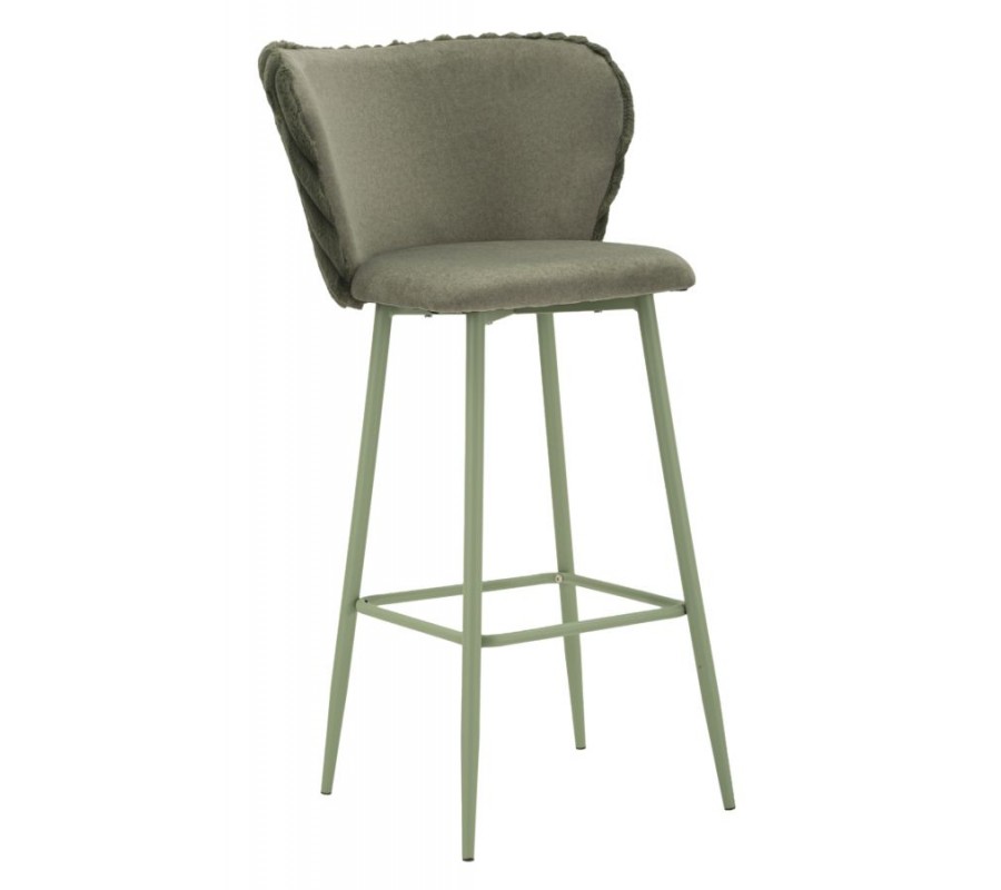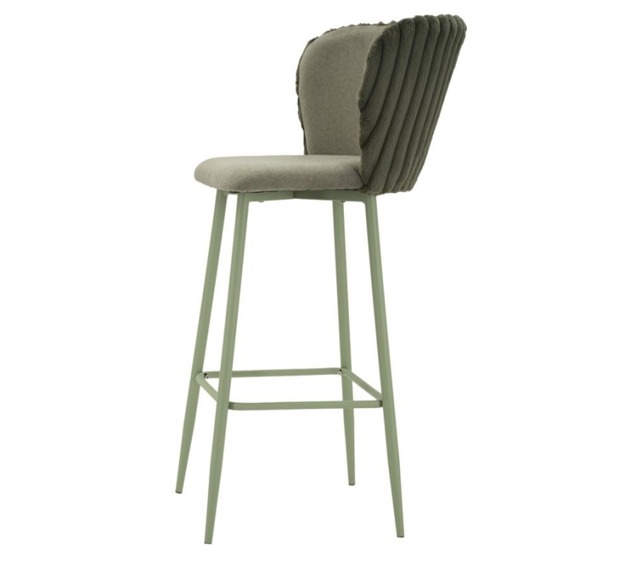 Barová židle Denali je stylovým spojením moderního designu s nádechem art deco estetiky. Šalvějové zelené provedení působí elegantně a do prostoru přinese svěží akcent.
