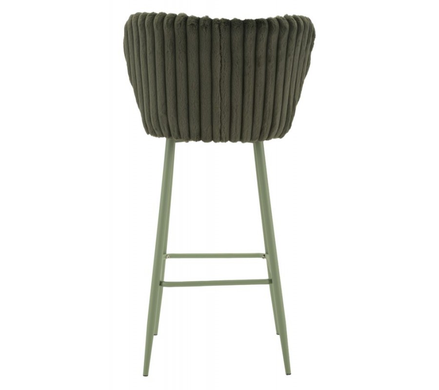 Designová art deco barová židle Denali se zeleným plyšovým potahem a vertikálním prošíváním 106 cm