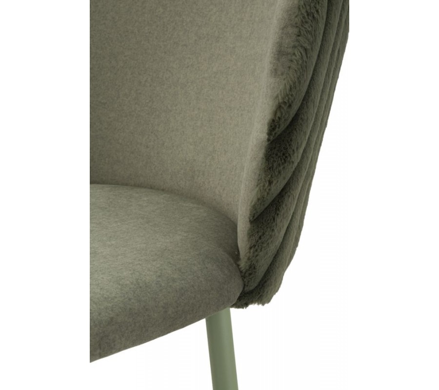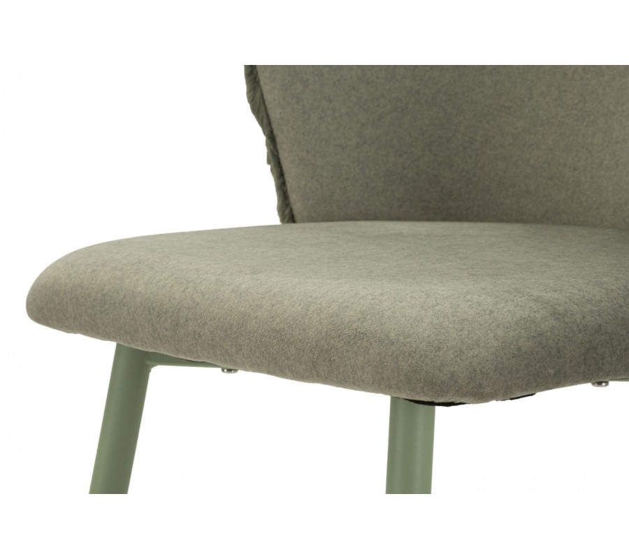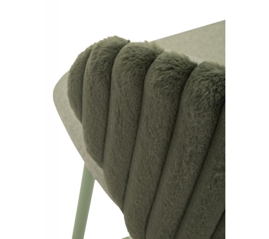 Sedací část je umístěna ve výšce 77 cm a má pevnou dřevěnou konstrukci, doplněnou o pěnové čalounění a potah z mikrovlákna. Materiál je mimořádně odolný vůči vlivům každodenního používání a plyšová povrchová úprava působí útulně a příjemně na dotek. Sedadlo a vnitřní strana opěrky jsou hladké, zatímco zadní část má vyšší vlas a připomíná kožešinu. Zdobí ji vertikální prošívání, typické pro art deco design.