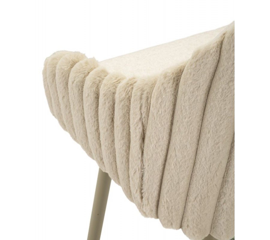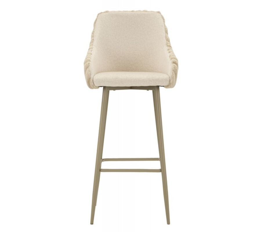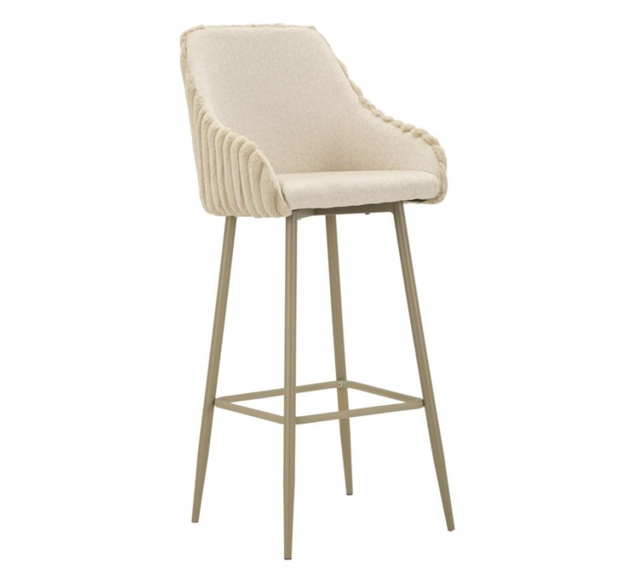 Moderní skandinávská barová židle Denali s plyšovým béžovým potahem s vertikálním prošíváním a kovovými nohama 111 cm