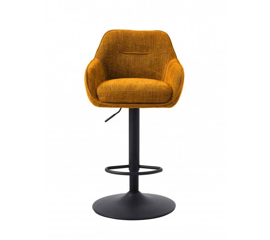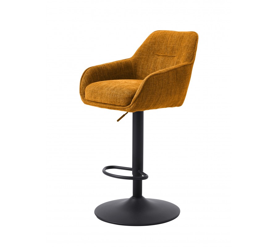 Moderní skandinávská výškově nastavitelná barová židle Egon s hořčicovým žlutým sametovým potahem a černou nohou 110 cm