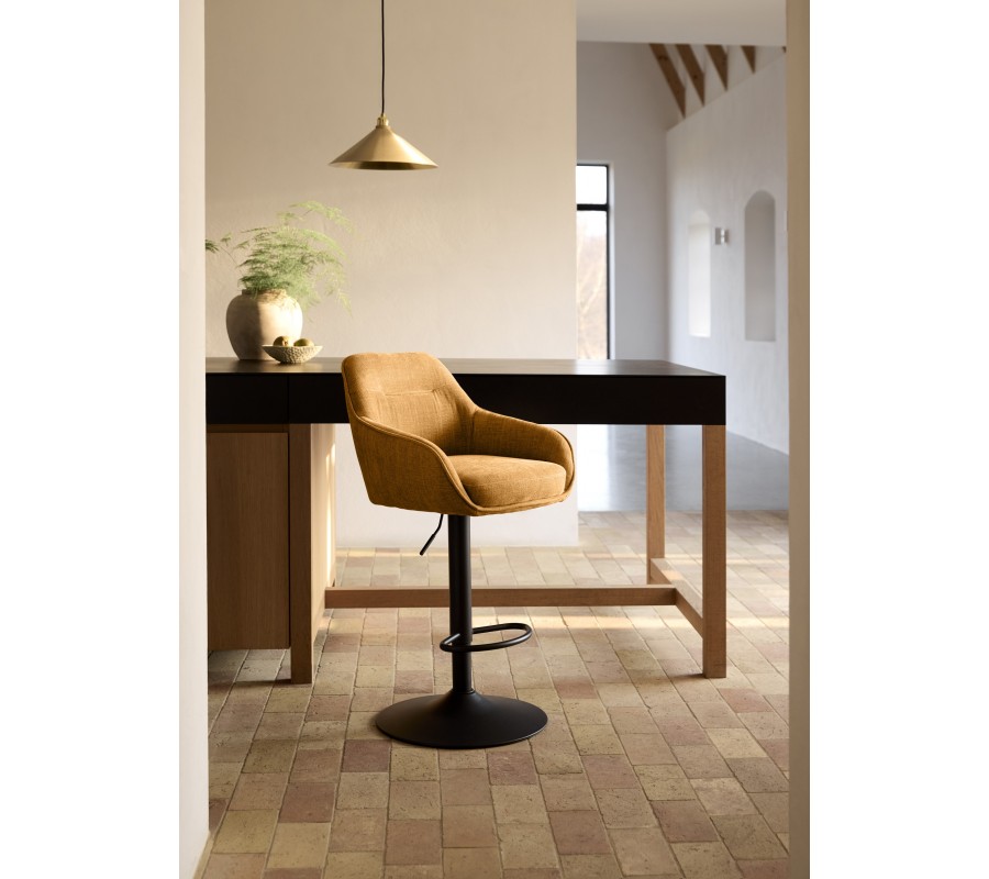 Barová židle Egon představuje harmonické spojení skandinávského a industriálního stylu v elegantní moderní formě. Měkké čalounění poskytuje vysoký komfort při sezení a praktická výškově nastavitelná noha umožňuje přizpůsobit židli podle vašich potřeb.