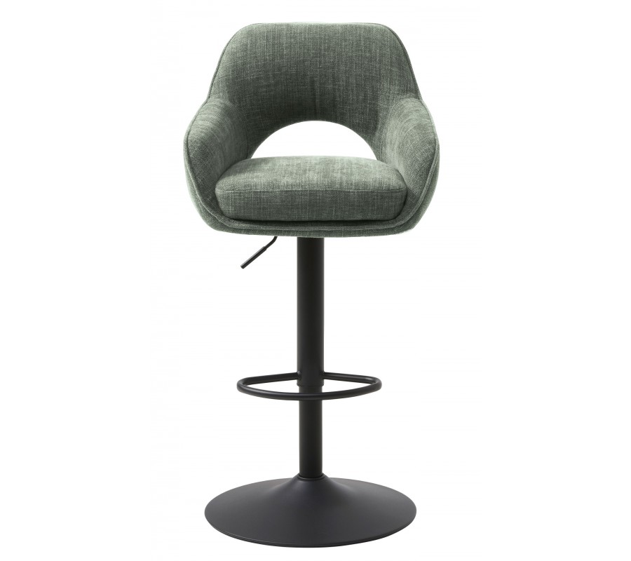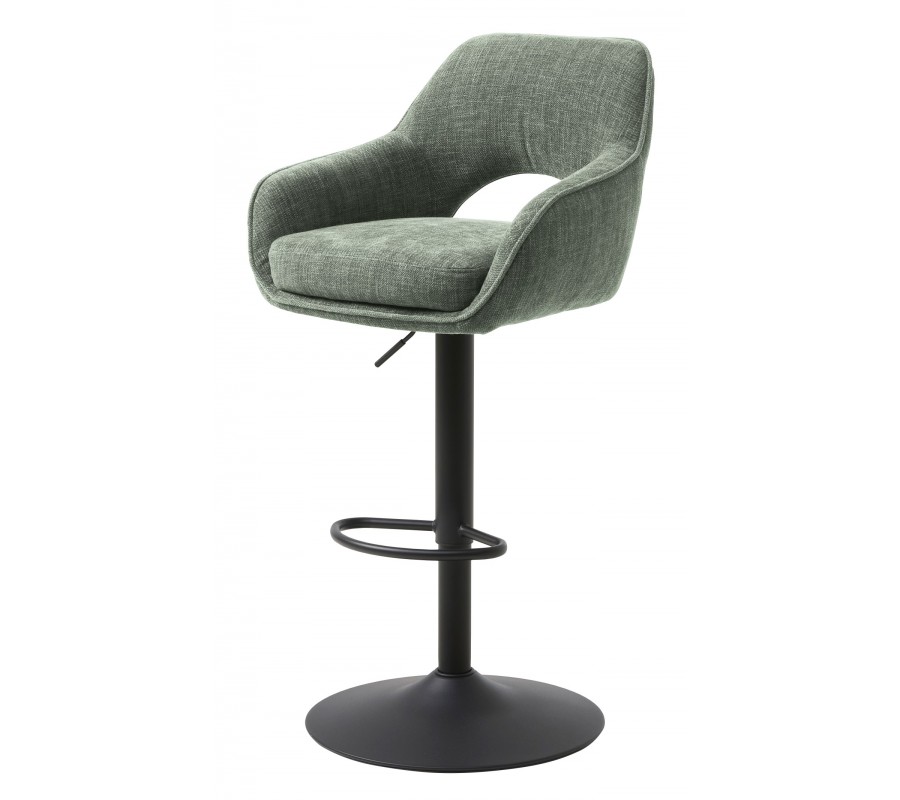 Moderní skandinávská výškově nastavitelná barová židle Mille s otočným sedátkem se šalvějovým zeleným potahem 111 cm