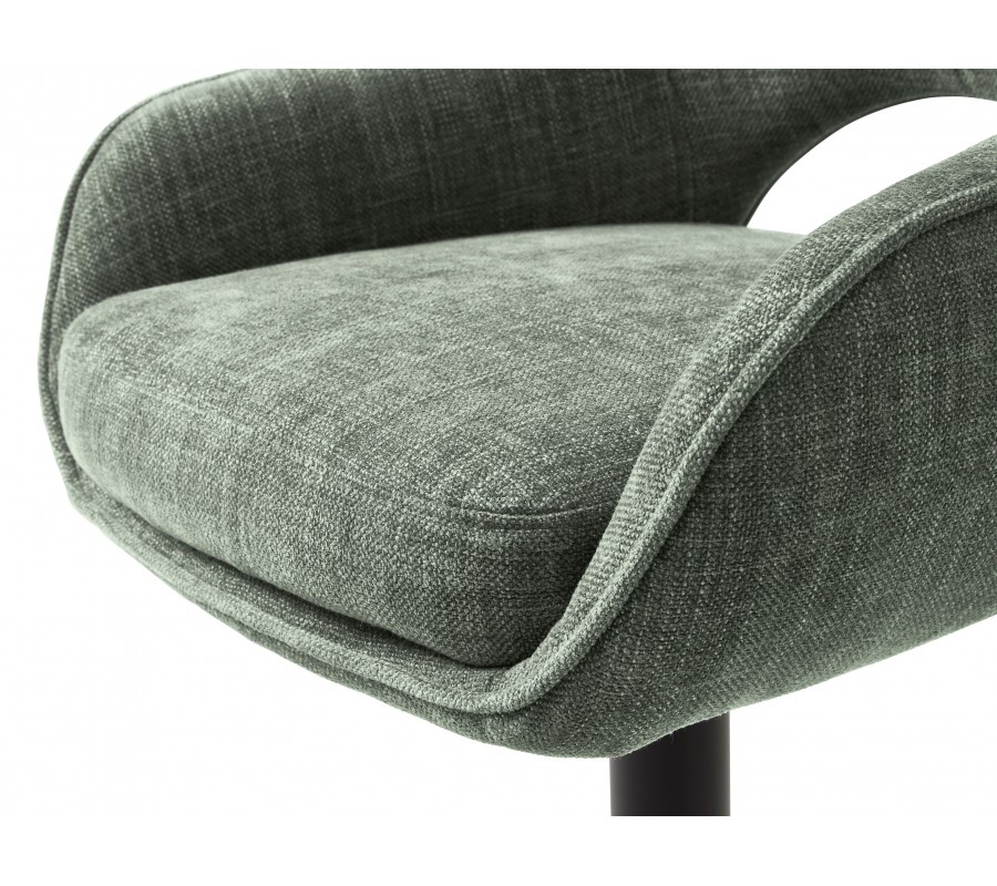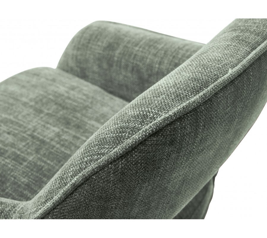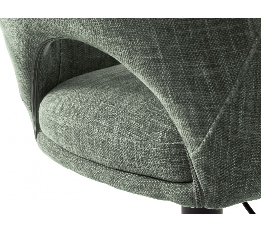 Potah je zhotoven z odolného mikrovlákna, které si zachovává svůj vzhled i při intenzivním každodenním používání a zároveň je nenáročné na údržbu. Látka má jemnou strukturu s melírovaným efektem v odstínu šalvějové zelené a příjemný ženilkový povrch. Černá kovová podnož vytváří kontrast a dodává designu moderní charakter.