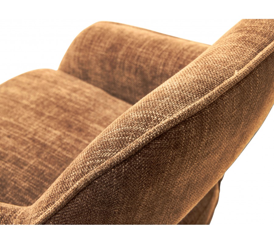 Potah sedací části je vyroben z mikrovlákna, které zaručuje vysokou odolnost vůči vlivům každodenního používání a nenáročnou údržbu. Textilie má subtilní strukturu tkaní, zdůrazněnou melírovaným hořčicově žlutým provedením a žinylkový finiš, který je příjemný na dotek. Podstava z kovu v černé barvě přináší do designu industriální kontrast.