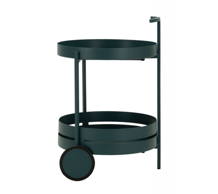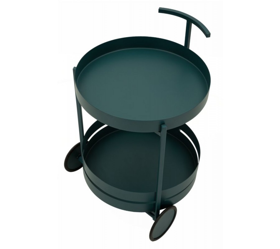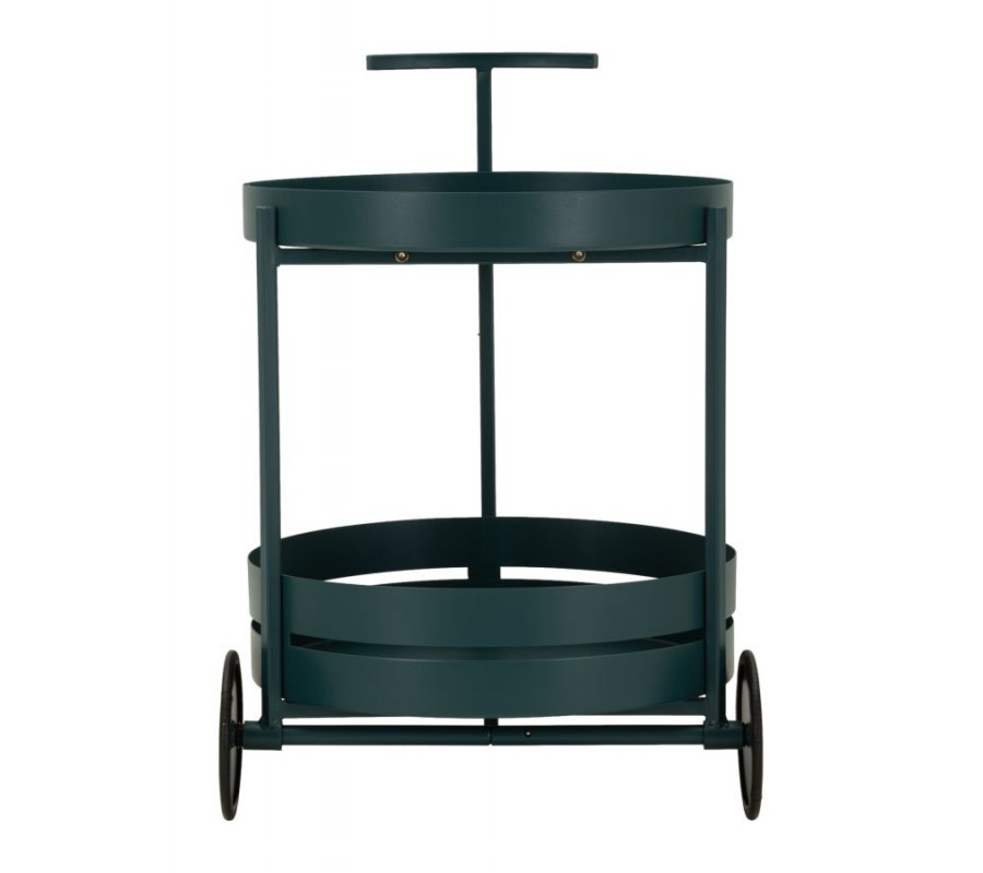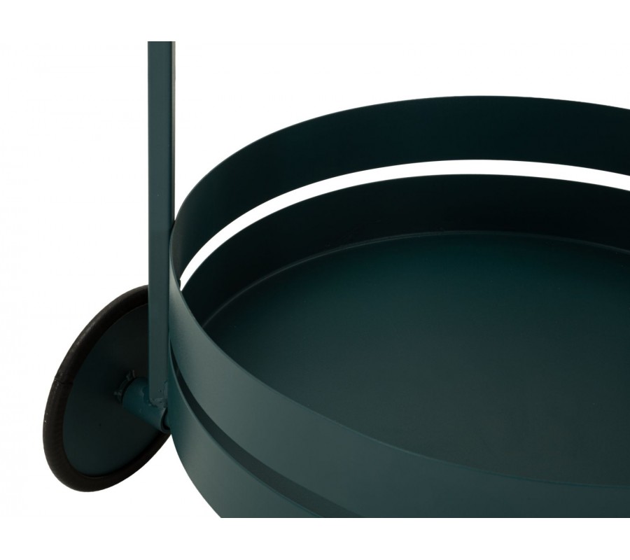 Moderní kulatý kovový modrý servírovací vozík Satre s policí na dvou kolečkách 61 cm