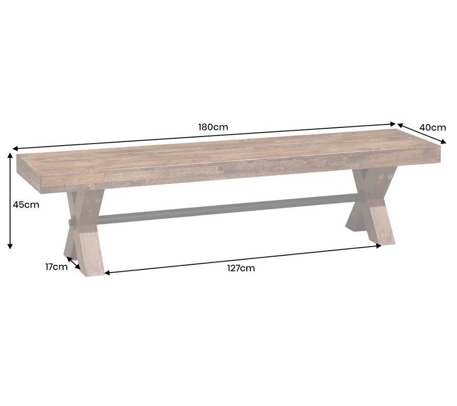 Lavice Sawyer přinese do vaší jídelny či předsíně dotek venkovského rustikálního stylu s nádechem industriální estetiky. S délkou 180 cm poskytne místo k sezení pro tři osoby.