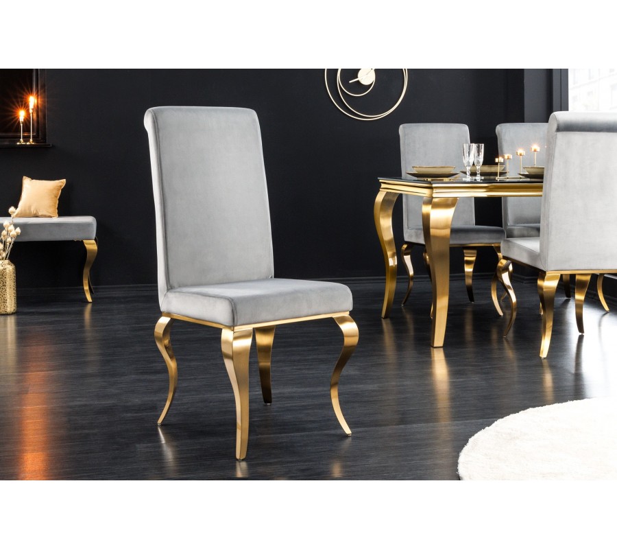 Designová barokní jídelní sestava Modern Barock ve zlaté a šedé barvě s přírodním dřevěným akcentem
