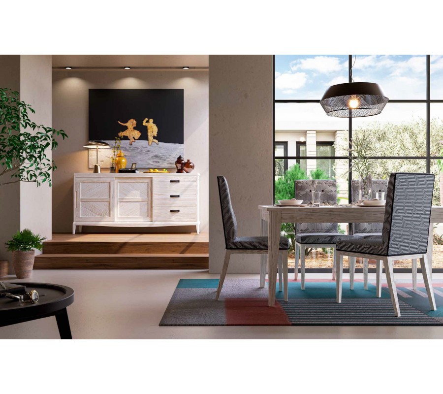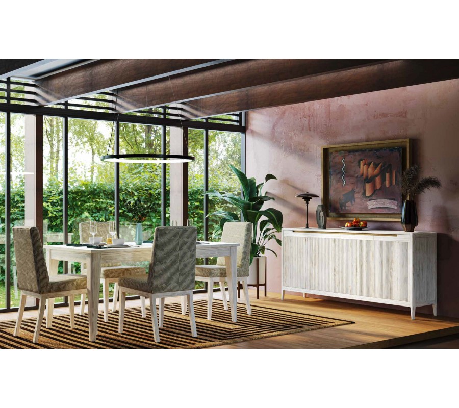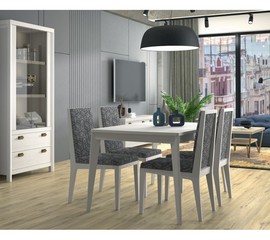 Stůl výborně doplní moderní jídelny a ve světlém provedení je skvělou volbou a do prostor zařízených ve skandinávském stylu. Hodí se k němu židle s masivním dřevěným rámem, pro tradičnější vizuál s venkovským nádechem. Minimalistický charakter podtrhnou jednobarevné čalouněné židle, zatímco modely se vzorovaným potahem dodají místnosti svěží akcent. Pro dokonale sladěný interiér můžete přidat i další luxusní nábytek ze stejné kolekce Lyon.