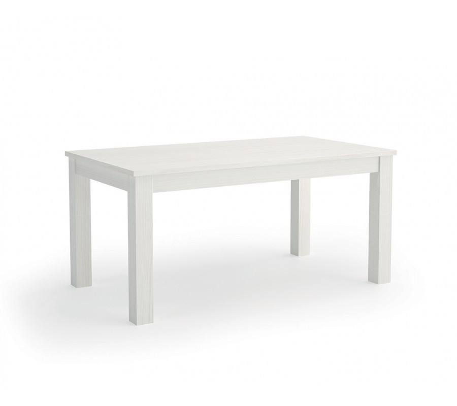 Stůl má obdélníkovou vrchní desku o délce 160 cm, za kterou usadíte šest osob. Díky rozkládací funkci lze ji prodloužit až na 220 cm, čímž se kapacita stolu zvýší na osm osob. Má elegantní štíhlý profil a ze spodní strany ji po obvodu doplňují ploché lišty, zajišťující dobrou stabilitu. Nožičky mají jednoduchý hranatý tvar a jejich umístění na rozích umožňuje pohodlné sezení u delších stran i za vrcholy stolu. Celková silueta působí minimalistickým lineárním dojmem.