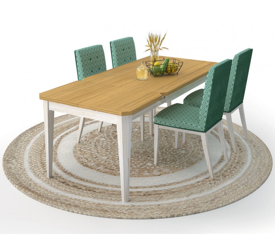 Stůl má obdélníkovou vrchní desku o délce 142 cm, která poskytne místo pro čtyři až šest osob. Lze ji roztáhnout na 202 cm, přičemž se kapacita stolu zvýší na šest až osm osob. Je tak skvělou volbou pro každodenní stolování a poslouží i při speciálních příležitostech, kdy potřebujete usadit více hostů.