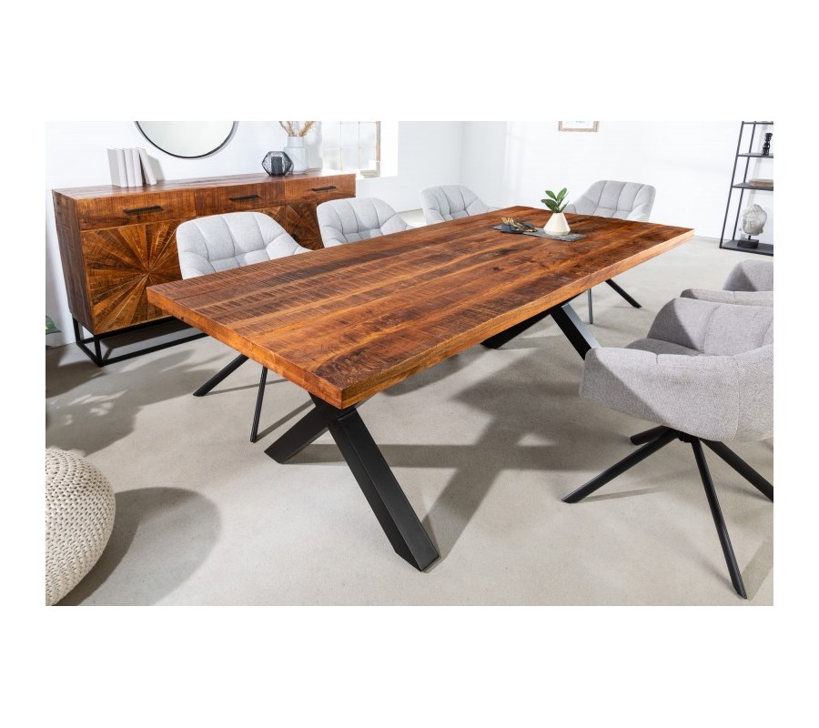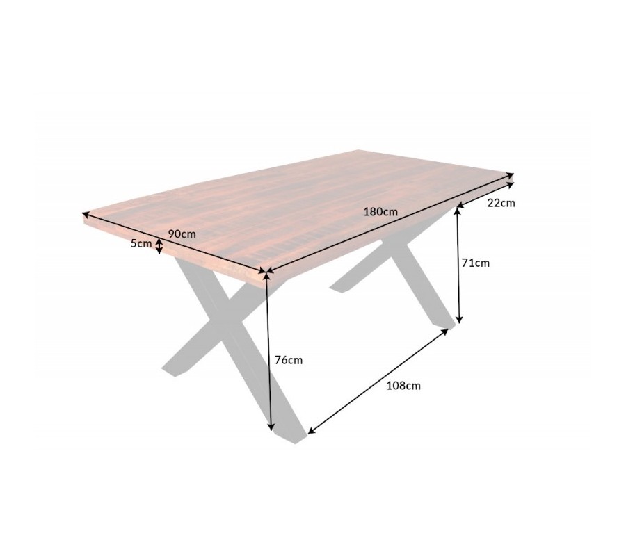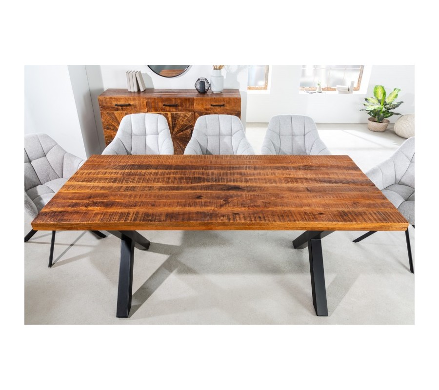Stylový jídelní stůl Fair Haven je nadčasovým kouskem vhodným především do moderních jídelen, kuchyní či obývacích pokojů. Zaujme svojí mohutnou konstrukcí z kvalitního masivního mangového dřeva, kterou doplňují černé kovové nohy překřížené do tvaru x. Barevná kombinace přírodní hnědé a černé a kombinace těchto materiálů vytváří nezaměnitelný industriální nádech, který oživí vaše prostory a dodá jim efekt nadčasovosti. Stůl Fair Haven se výborně kombinovat s masivními nebo čalouněnými židlemi. Doporučujeme také doplňky a dekorace v industriálním stylu nebo kousky z přírodních matreriálů. Za stůl se pohodlně usadí 6-8 lidí.