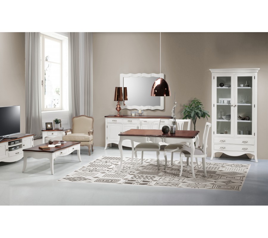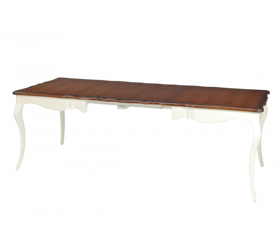 Za masivní rozkládací jídelní stůl rozhodně pohodlně usadíte celou svoji rodinu či větší množství hostů. Luxusní provedení vyrobené z kvalitního mahagonového dřeva s bílým nátěrem upoutá nejen milovníka nostalgie a nábytku dýchajícího minulostí. Mohutná vrchní deska v tmavě hnědé barvě působí elegantně a bílá konstrukce spolu s výraznými oblými liniemi přidává k nadčasovosti tohoto stolu. Lze jej snadno složit či rozložit podle vašich momentálních potřeb. Jídelní stůl má mohutné nohy s oblým výřezem, méně výrazně obloukovité štíty lemující spodní část vrchní desky zdobenou vyřezáváním slouží při rozkládání k prodloužení stolu. Majestátou vaší jídelny se rozhodně stane stůl z kolekce Deliciosa a podtrhne tak atmosféru francouzského venkově.