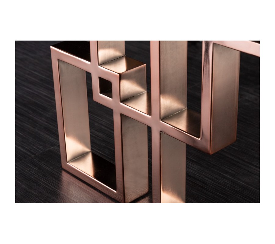 Jídelní stůl Ariana vás může okouzlit svým extravagantním vzhledem ve stylu art-deco. Jídelnímu stolu dominují pestré barvy, které dokážou na sebe přitáhnout pozornost a vytvořit jedinečný luxusní pocit z vaší jídelny. Vrchní deska stolu Ariana je chráněna bezpečnostním temperovaným sklem, přičemž se také nese v tyrkysově modré barvě a její vzhled je doplněn o luxusní mramorový design. Jedinečný vzhled vrchní desky je doplněn excentrickými nožičkami v podobně podstavy se symetrickým čtvercovým designem. Podstava v provedení pěti propojených čtverců se nese v růžovém odstínu zlaté barvy, což podtrhuje výjimečný design jídelního stolu Ariana. Díky svému barevnému a designovému provedení doporučujeme kombinovat stůl Ariana v luxusních art-deco jídelnách, v kombinaci se světle růžově čalouněnými židlemi a světlými kovovými doplňky.