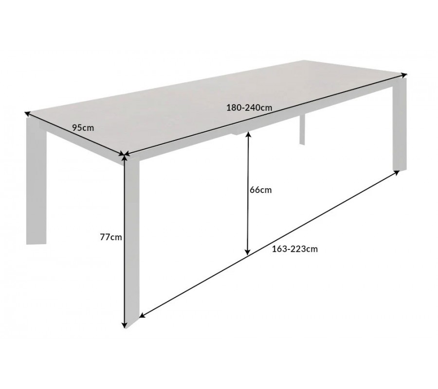 Elegantní pevný a stabilní stůl Antan v moderním provedení vás potěší svým nadčasovým a minimalistickým designem. Jídelní antracitový stůl přichází v rozkladatelné verzi a jeho konstrukce sestává z kovového rámu v matné šedé barvě a vrchní keramické desky ve stejné barvě položené na čtyřech vysokých štíhlých nohou. Za stůl pohodlně usadíte 8-12 osob dle potřeby. Výborně se bude hodit do moderních či art deco laděných jídelen či konferenčních místností spolu se sametovými jídelními židlemi v medově žluté, smaragdové či krémové barvě. Ke stolu Antan je vhodné ladit minimalistický moderní nábytek v tmavých barvách jako například komodu s kovovou konstrukcí dekorovanou moderní asymetrickou vázou či kovovými stříbrnými hodinami. Díky štědrým rozměrům si můžete večeři vychutnat s vaší rodinou i přáteli.
