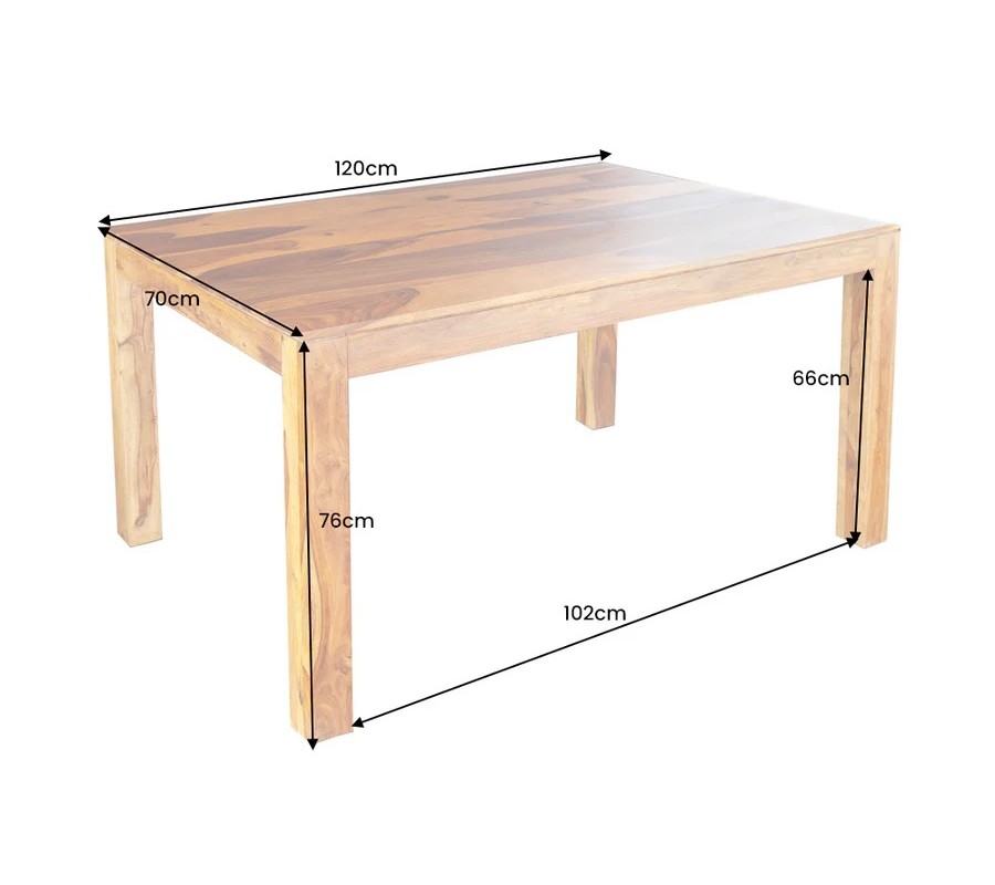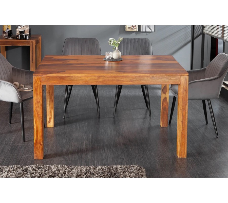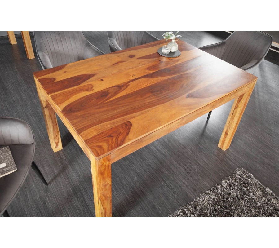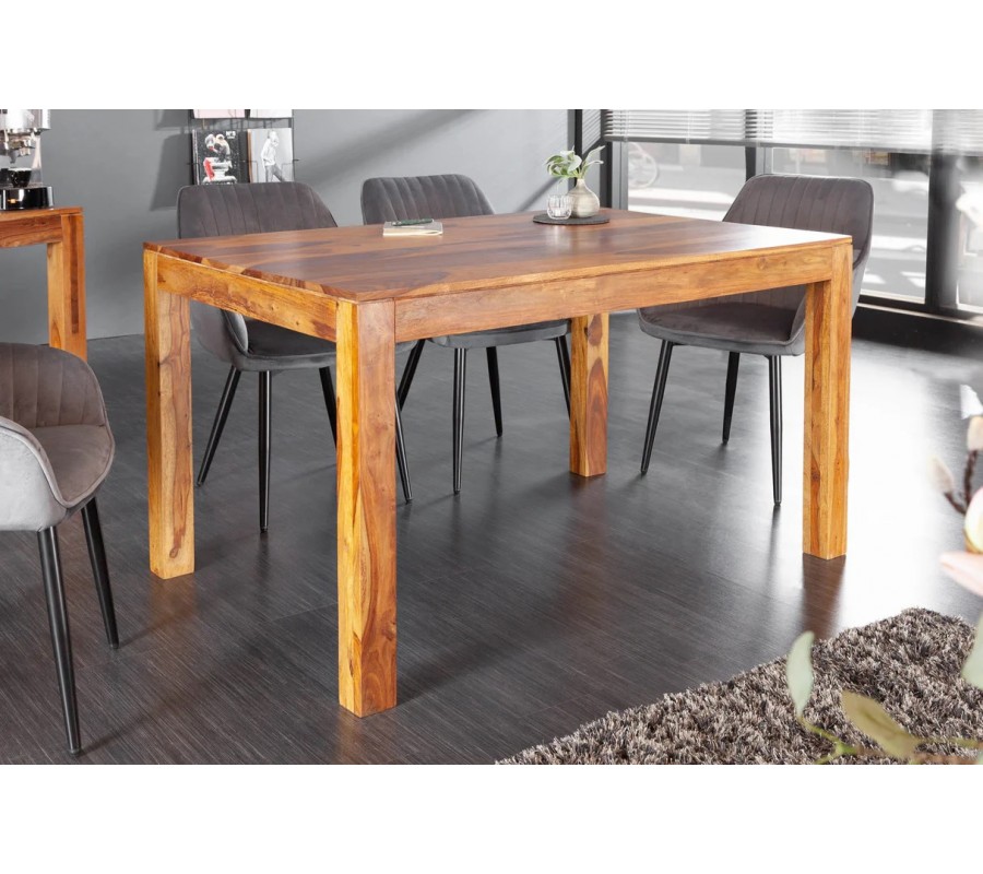 Obdélníkový jídelní stůl dodá vaší jídelně útulnou venkovskou atmosféru. Designu dominuje masivní sheeshamové dřevo v teplé světlé barvě. Díky jednoduché lineární siluetě stolu a rovným povrchům vyniká nádherná přírodní kresba letokruhů. Každý kus je originální a ručně opracovaný, takže barva a kresba dřeva se mohou mírně lišit na základě jedinečnosti palisandrového masivu. Toto dřevo je velmi tvrdé a obtížné, díky čemuž je oblíbené u výrobců nábytku a zároveň zaručuje vysokou kvalitu a dlouhotrvající z něj vyhotovených výrobků. Za stůl pohodlně usadíte šest osob. Můžete jej doplnit dalším nábytkem z masivního dřeva ve světlých přírodních tónech, například z kolekce Massive, který naleznete v naší nabídce. Chcete-li ještě zvýraznit naturální charakter, doporučujeme přidat živé zelené rostliny. Stůl je vhodný i do jídelen zařízených v šarmantním venkovském stylu, kde jej můžete doplnit jídelními židlemi se vzorovaným čalouněním nebo pestrými doplňky, jako například malovanou vázou.