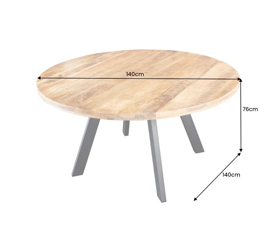 Při průměru 140 cm poskytuje jídelní stůl Steele Craft komfortní místo pro 4 až 6 osob, díky čemuž je vhodný pro každodenní stolování i společná setkání s rodinou či přáteli.