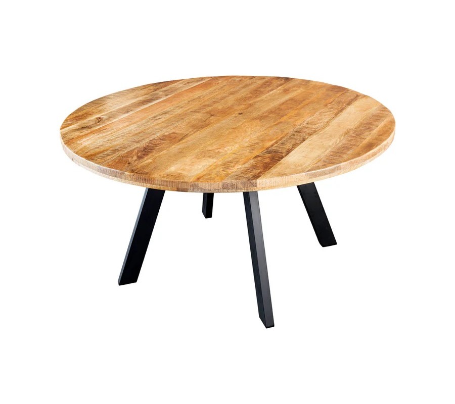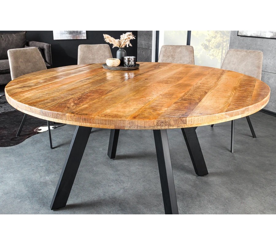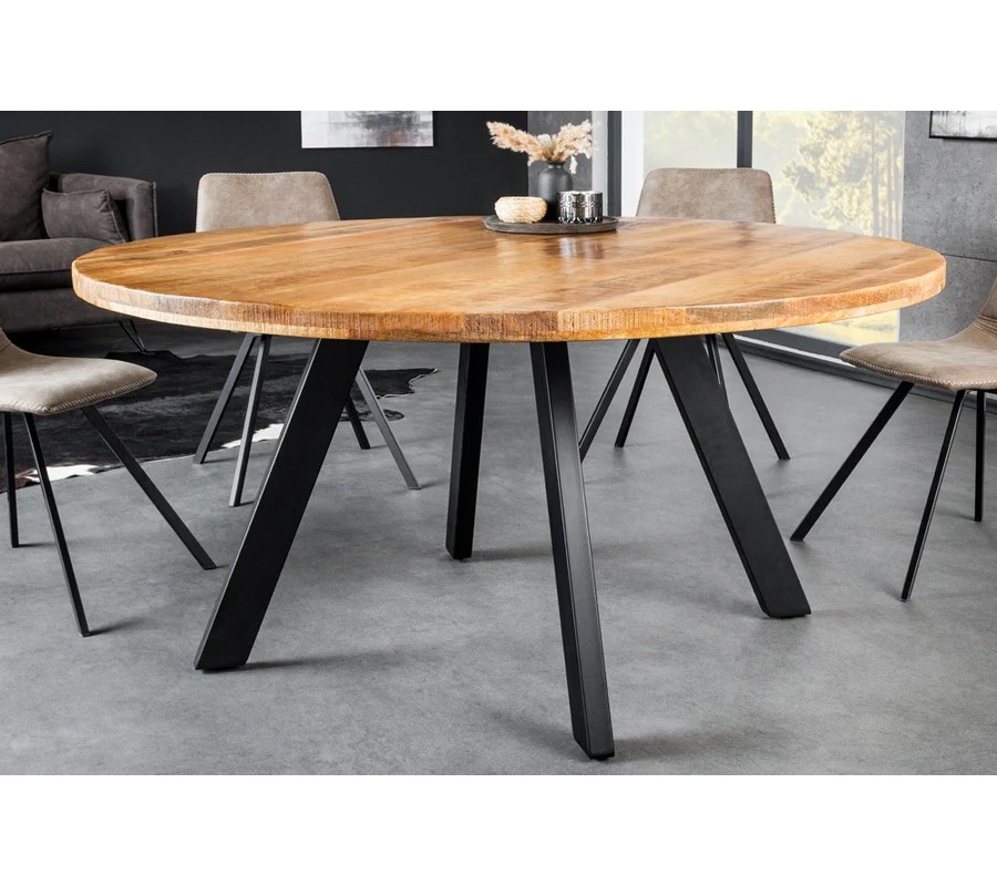 Industriální kulatý jídelní stůl Steele Craft v masivním provedení je nadčasovým kouskem, který do interiéru vnáší přirozené teplo dřeva a surový industriální charakter. Díky kombinaci masivní dřevěné desky a černé kovové podnože působí stabilně, autenticky a zároveň moderně.