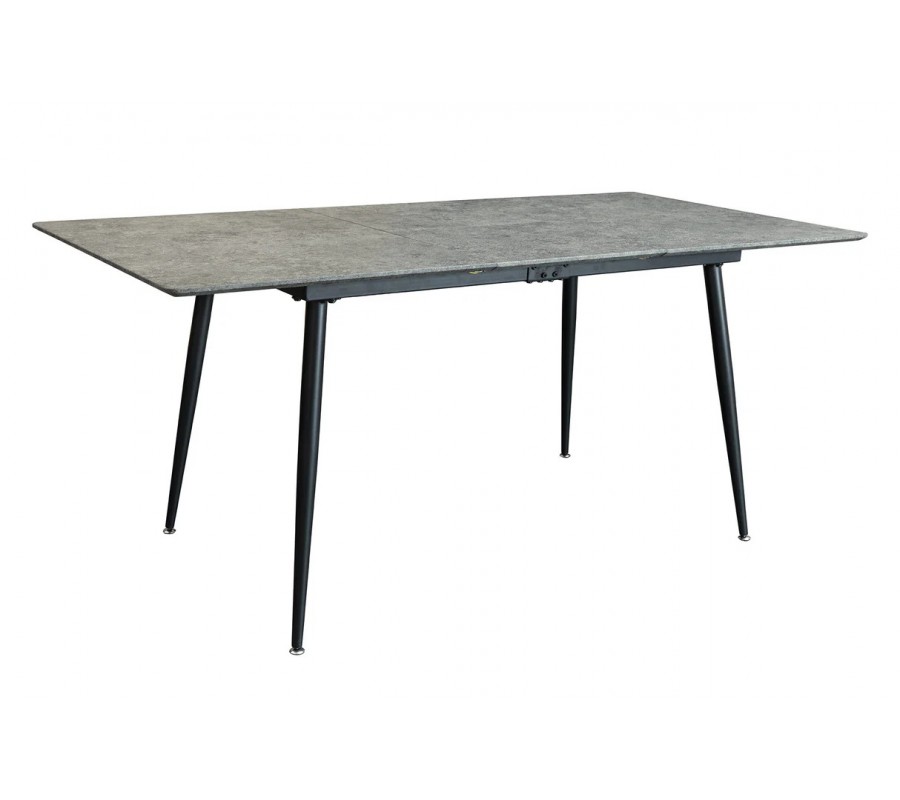 Moderní obdélníkový rozkládací jídelní stůl Maison s mramorovým šedým designem a černými kovovými nožičkami 120-160 cm