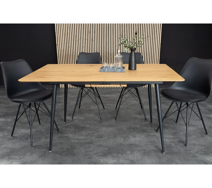 Stůl je rozkládací v rozsahu od 120 do 160 cm. Ve středové části se nachází samostatná vkládací deska, která se snadno vybírá a umožňuje rychlé zvětšení stolní plochy. Při délce 120 cm poskytuje pohodlné stolování pro čtyři osoby. Po rozložení na 160 cm nabízí komfortní prostor pro šest osob, díky čemuž je vhodný nejen pro běžné stolování, ale i pro rodinné setkání či návštěvy.