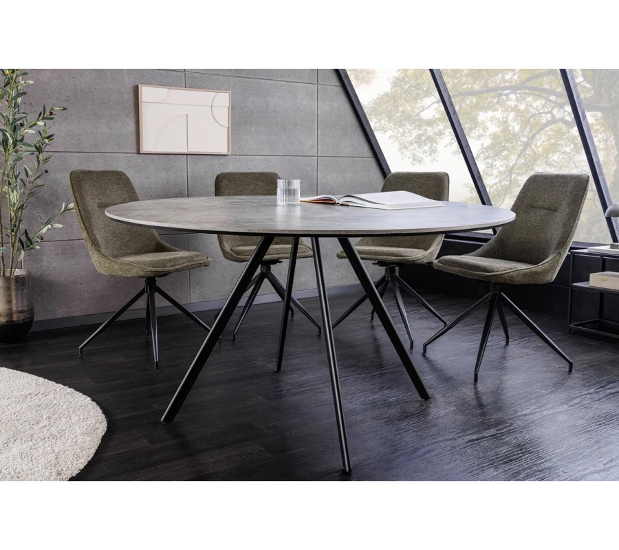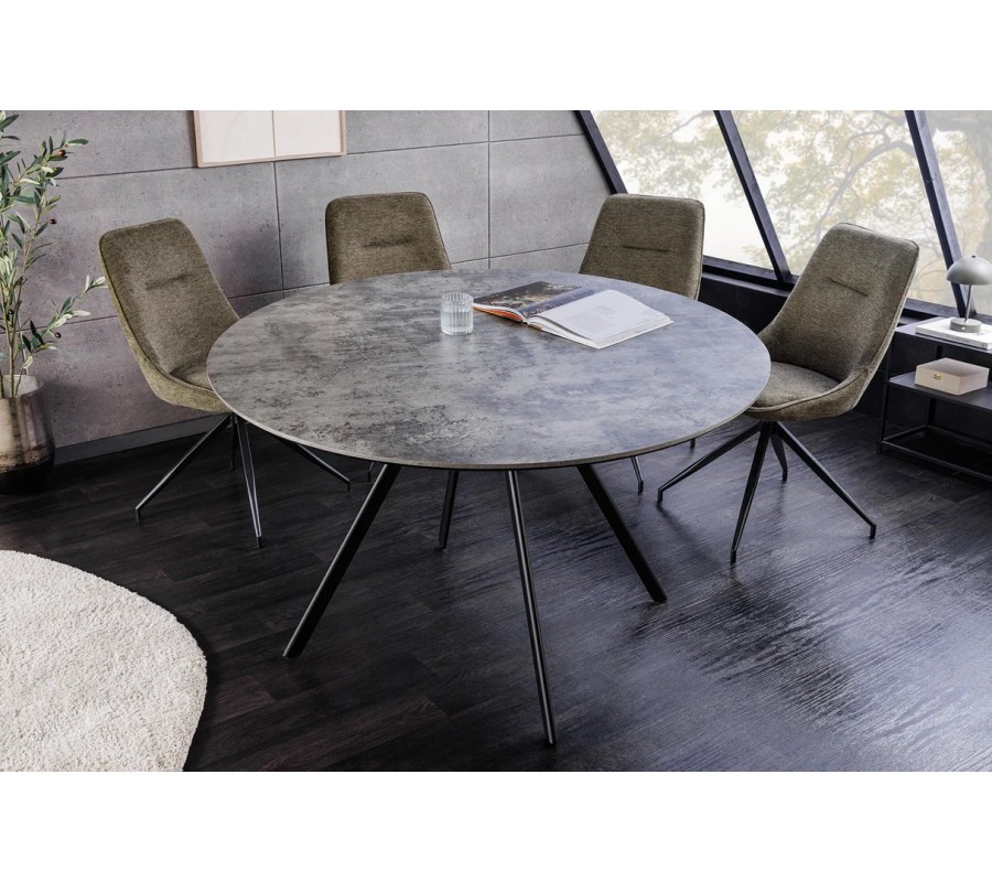 Industriální kulatý jídelní stůl Mefar vyniká vyváženým spojením surového industriálního stylu, moderního designu a jemného skandinávského nádechu, který klade důraz na čisté linie a funkčnost. Jeho dominantou je vrchní deska s mramorovým vzhledem v šedých odstínech, která dodává stolu výrazný a nadčasový charakter. Jemná kresba povrchu připomíná strukturu přírodního kamene, což činí stůl originálním a vizuálně zajímavým prvkem interiéru.