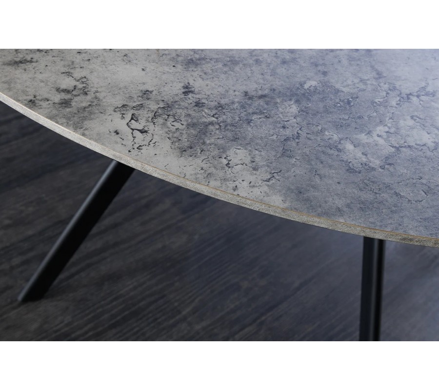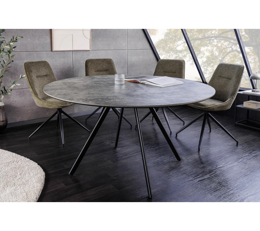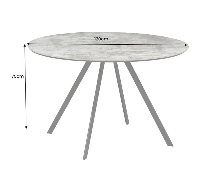 Industriální kulatý jídelní stůl Mefar vyniká vyváženým spojením surového industriálního stylu, moderního designu a jemného skandinávského nádechu, který klade důraz na čisté linie a funkčnost. Jeho dominantou je vrchní deska s mramorovým vzhledem v šedých odstínech, která dodává stolu výrazný a nadčasový charakter. Jemná kresba povrchu připomíná strukturu přírodního kamene, což činí stůl originálním a vizuálně zajímavým prvkem interiéru.