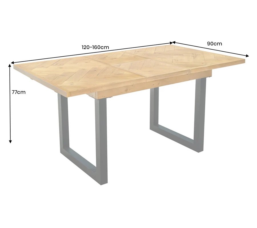 Ve středové části se nacházejí dvě samostatné čtvercové desky, které se podle potřeby vybírají a ukládají pod hlavní desku stolu, což umožňuje snadné rozložení bez nároků. V základním stavu má stůl délku 120 cm a pohodlně usadí 4 osoby. Po rozložení na 160 cm poskytuje komfortní stolování pro 6 osob, díky čemuž je vhodný pro rodinné setkání či návštěvy.